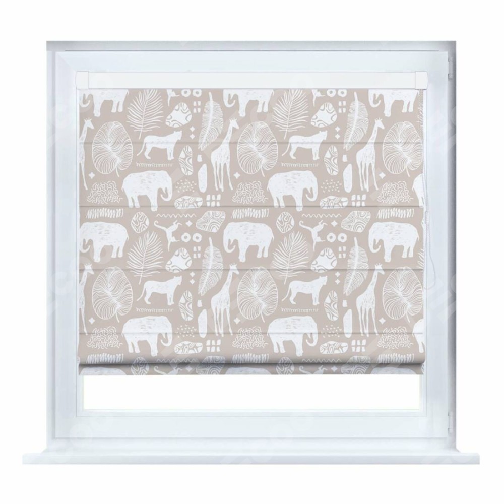 Римская штора производителя «Cortin», устанавливается на створку окна, пошита из ткани блэкаут с нанесением сублимационной печати «Африканские животные». Штора шьётся по индивидуальным размерам, для данного типа римской шторы возможная ширина от 35 до 150 см., высота до 250 см.