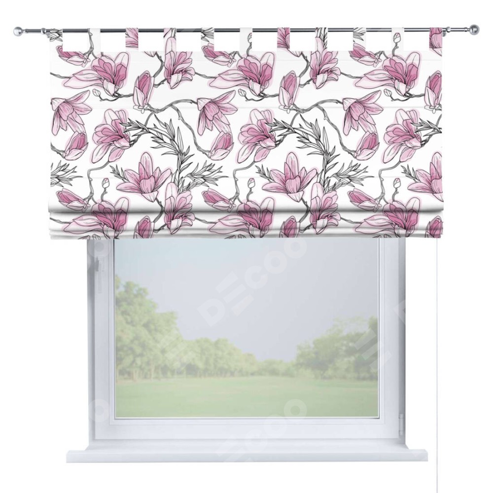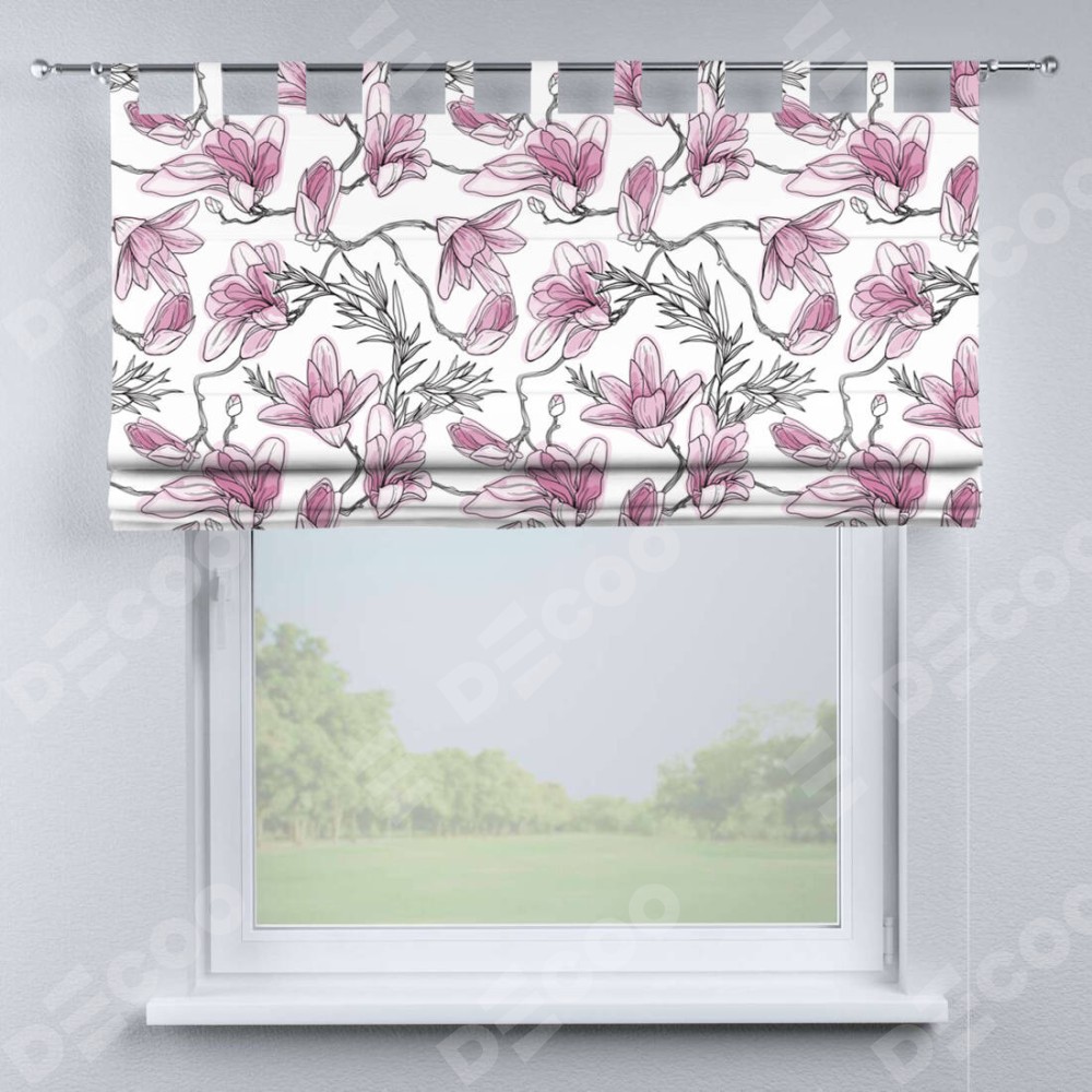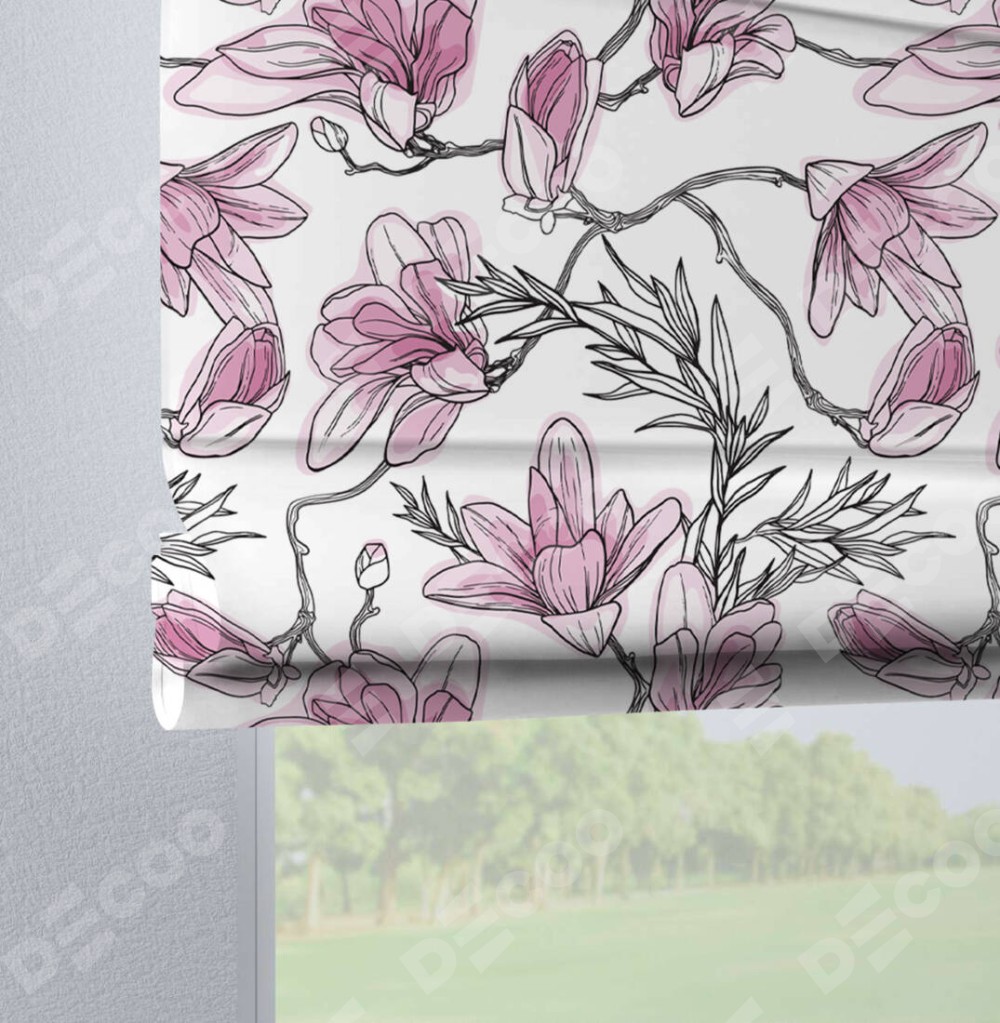 Римская штора производителя «Cortin», используется для проёма, пошита из ткани блэкаут с нанесением сублимационной печати «Цветки магнолии». Данная модель пошита на петлях, комплектуется на выбор круглым карнизом и подходит для монтажа на стену. Римская штора на петлях имеет простую систему регулировки высоты, отличительным преимуществом данной модели является простой способ монтажа. Достаточно повесить ее на трубу и штора готова!