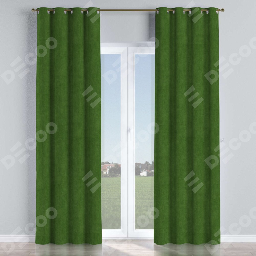 Комплект прямых штор, от производителя «Cortin», пошиты из ткани вельвет тёмно-салатовый, артикул ткани 33805. Данная модель пошита на люверсах, комплектуется на выбор круглым карнизом и подходит для монтажа на стену или потолок. Прямые шторы на люверсах шьются по стандарту с коэффициентом 1/2 (на 100 см. ширины проёма 200 см. ширины ткани), отличительным преимуществом данной модели является простой способ монтажа. Достаточно повесить ее на трубу и штора готова!