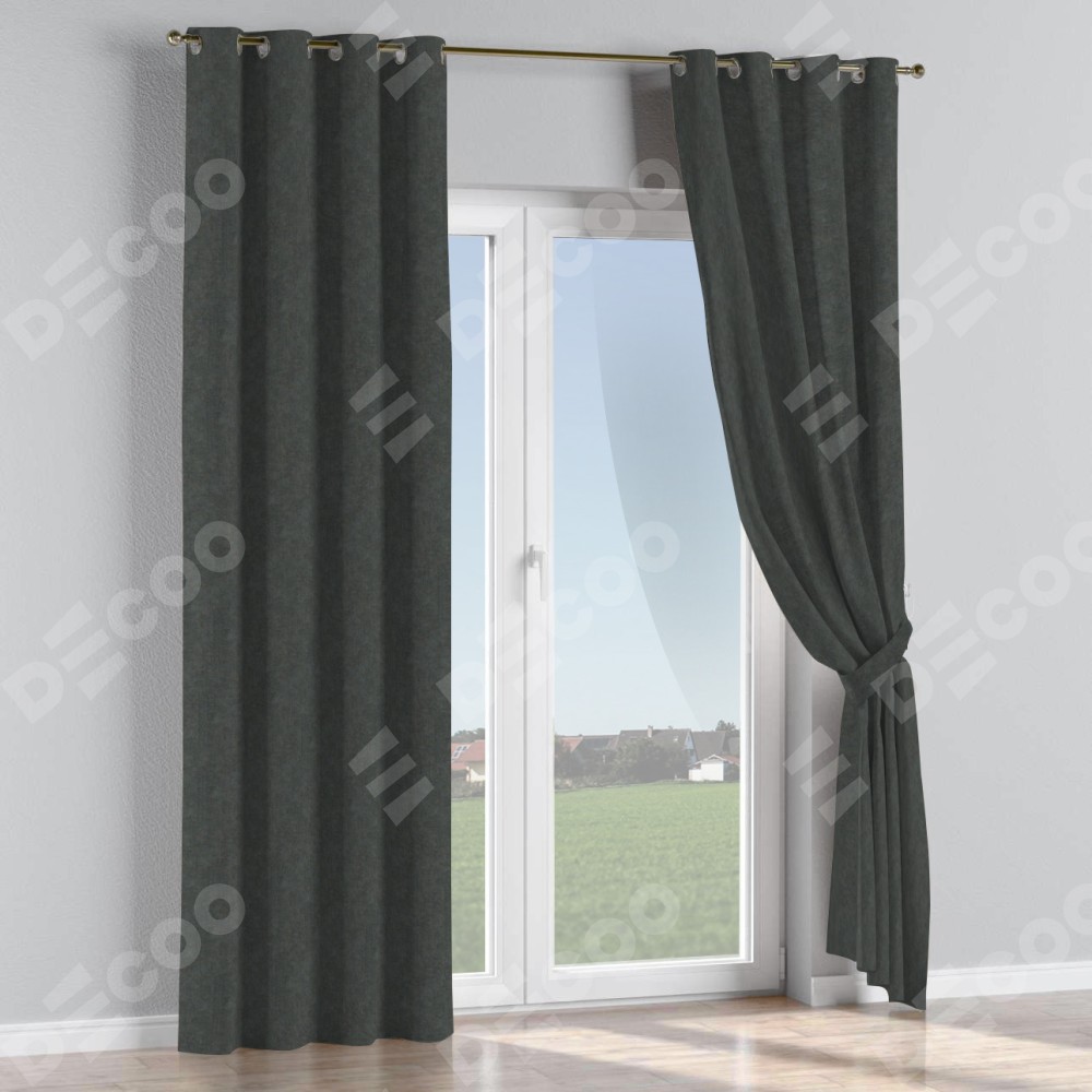 Комплект прямых штор, от производителя «Cortin», пошиты из ткани вельвет тёмно-серый, артикул ткани 33811. Данная модель пошита на люверсах, комплектуется на выбор круглым карнизом и подходит для монтажа на стену или потолок. Прямые шторы на люверсах шьются по стандарту с коэффициентом 1/2 (на 100 см. ширины проёма 200 см. ширины ткани), отличительным преимуществом данной модели является простой способ монтажа. Достаточно повесить ее на трубу и штора готова!
