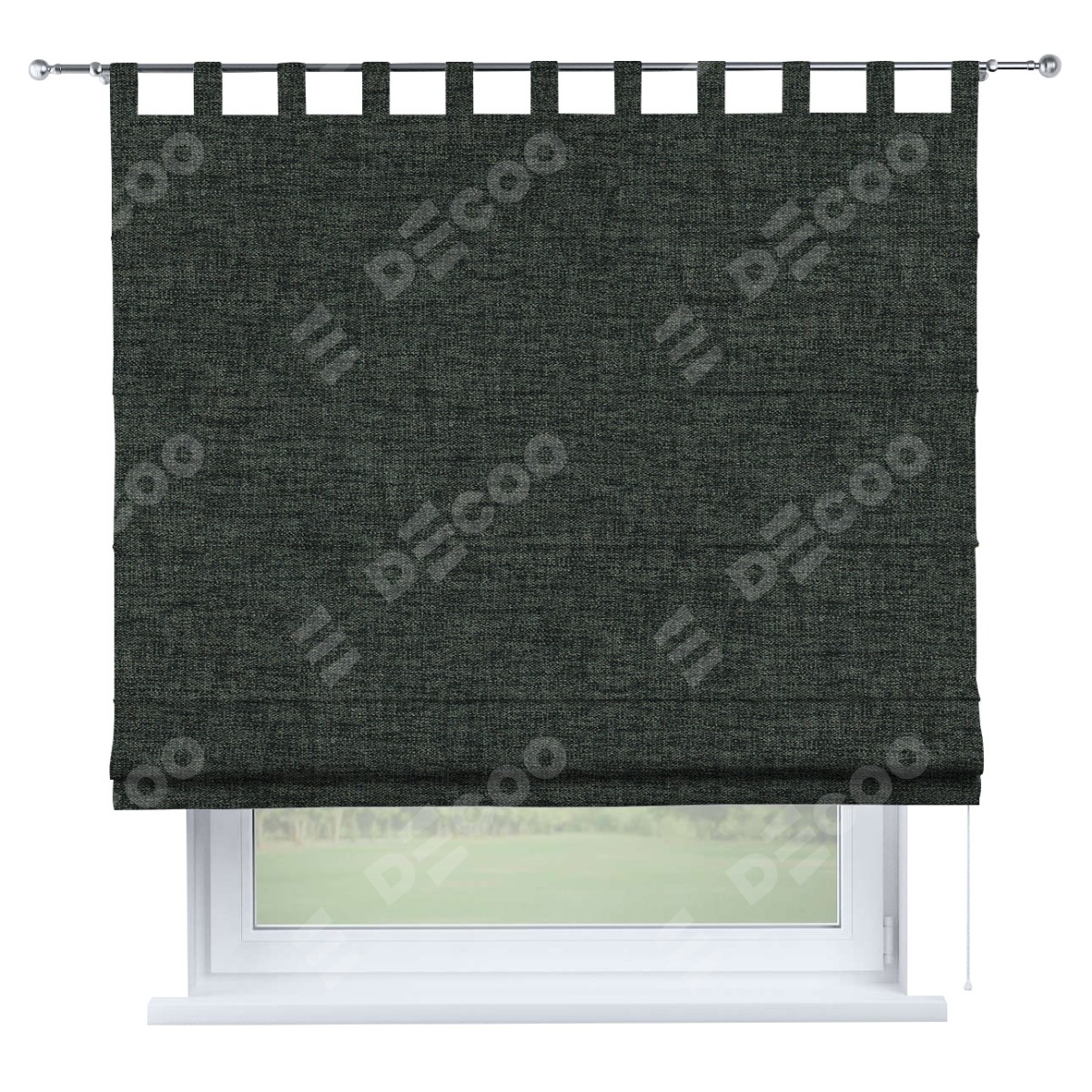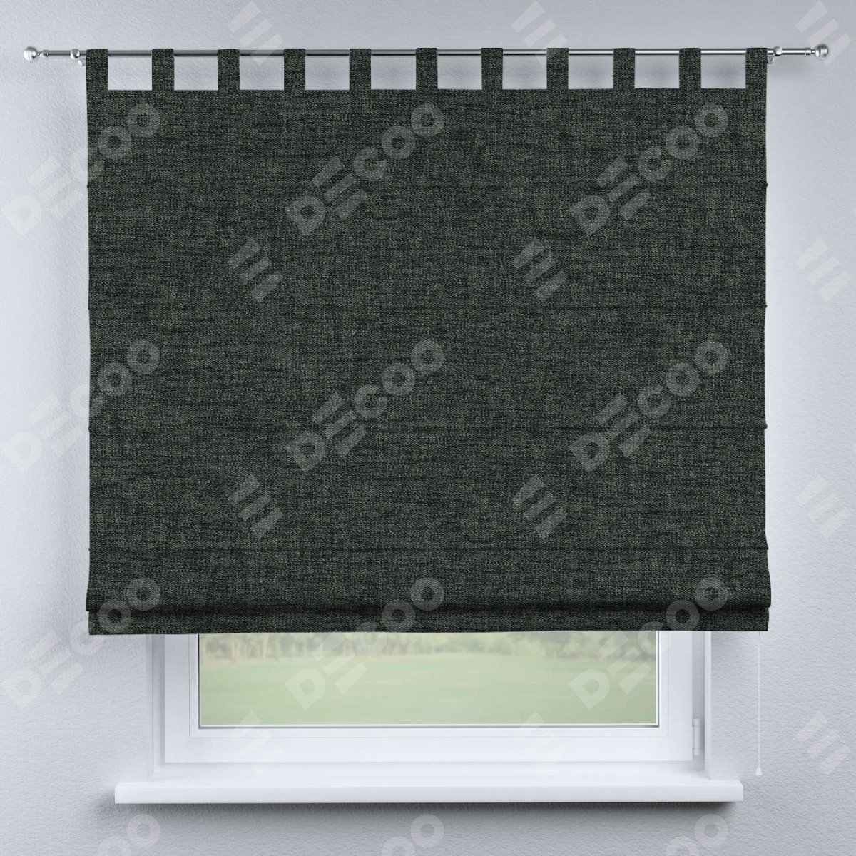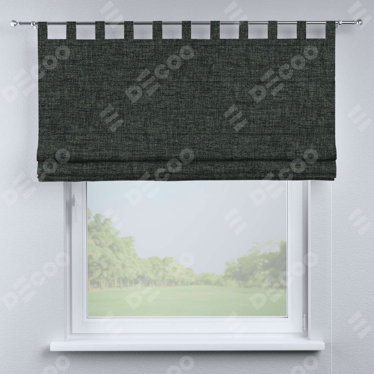 Римская штора производителя «Cortin», используется для проёма, пошита из ткани рогожка димаут графит, артикул ткани 102−34. Данная модель пошита на петлях, комплектуется на выбор круглым карнизом и подходит для монтажа на стену. Римская штора на петлях имеет простую систему регулировки высоты, отличительным преимуществом данной модели является простой способ монтажа. Достаточно повесить ее на трубу и штора готова!