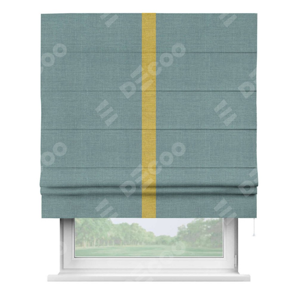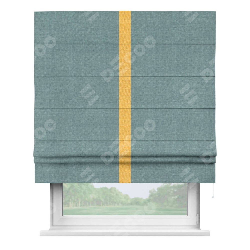Римская штора «Кортин» с отделкой кантом Хайвэй, для проема, ткань лён голубой