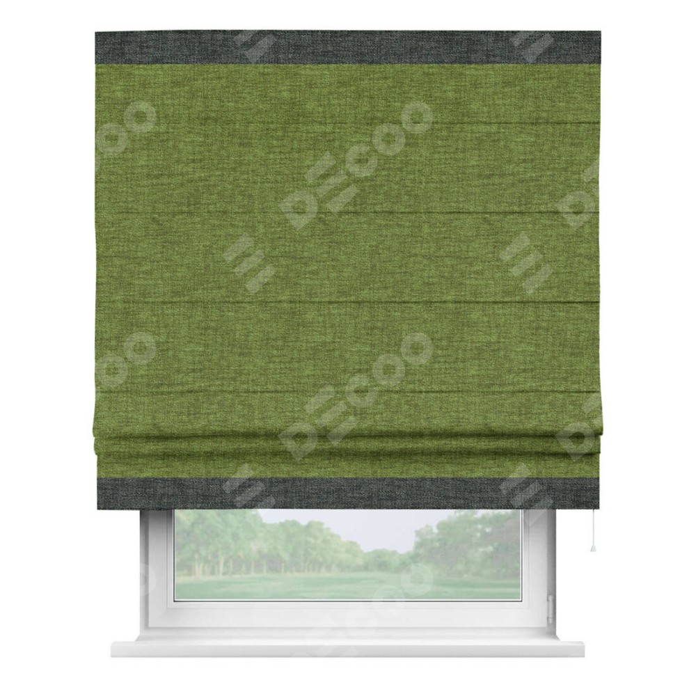 Римская штора «Кортин» с кантом Горизонт, для проема, ткань рогожка димаут, салатовый