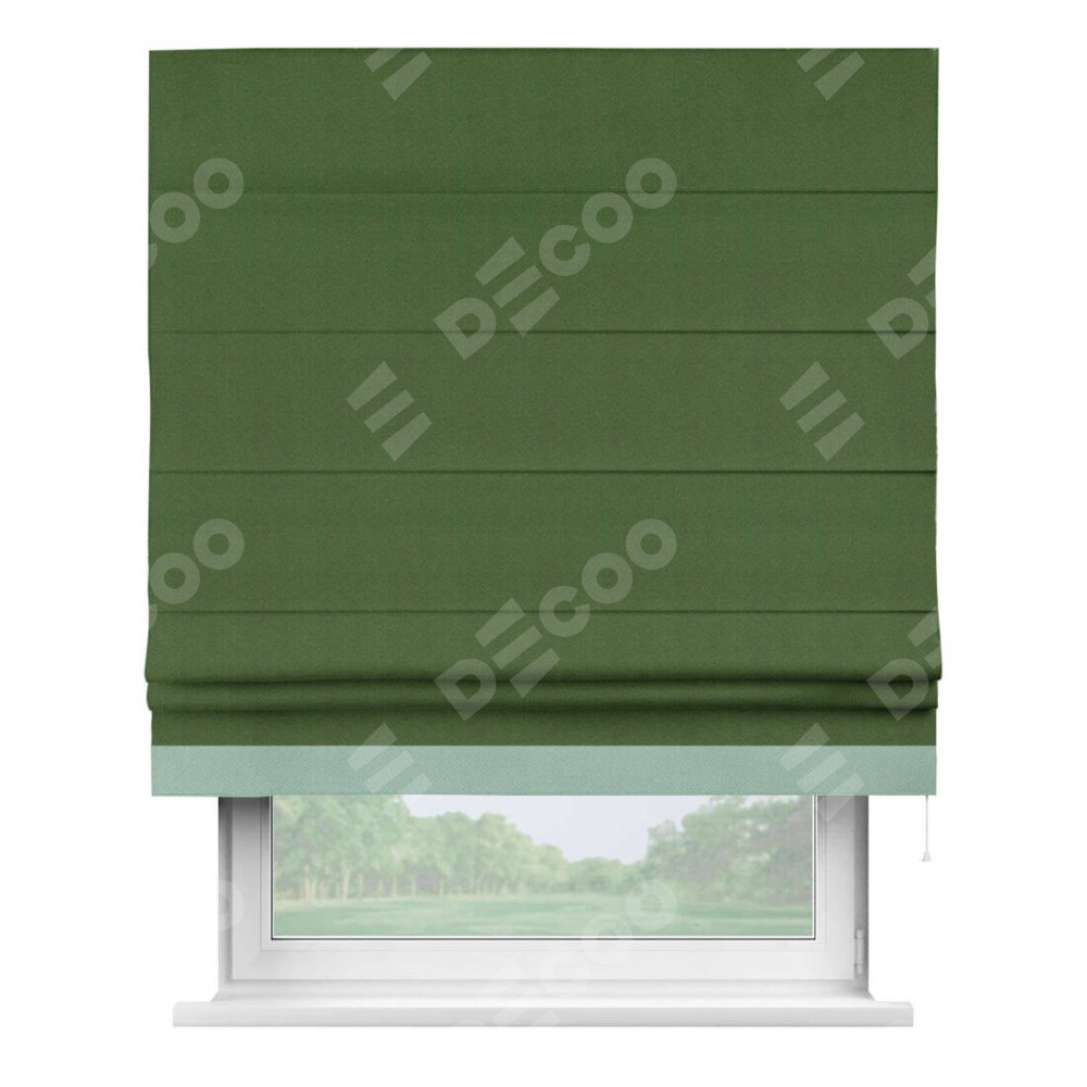 Римская штора «Кортин» с кантом Джестер, для проема, ткань блэкаут однотонный зелёный перламутр