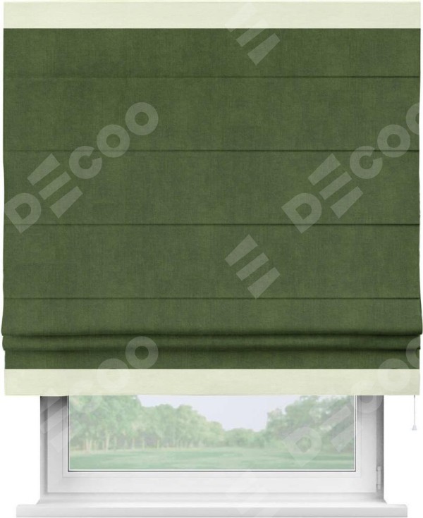 Римская штора «Кортин» с кантом Горизонт, для проема, ткань вельвет тёмно-салатовый