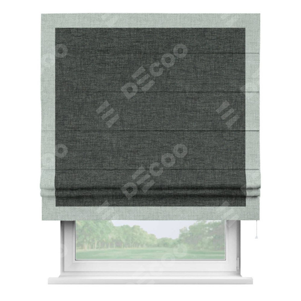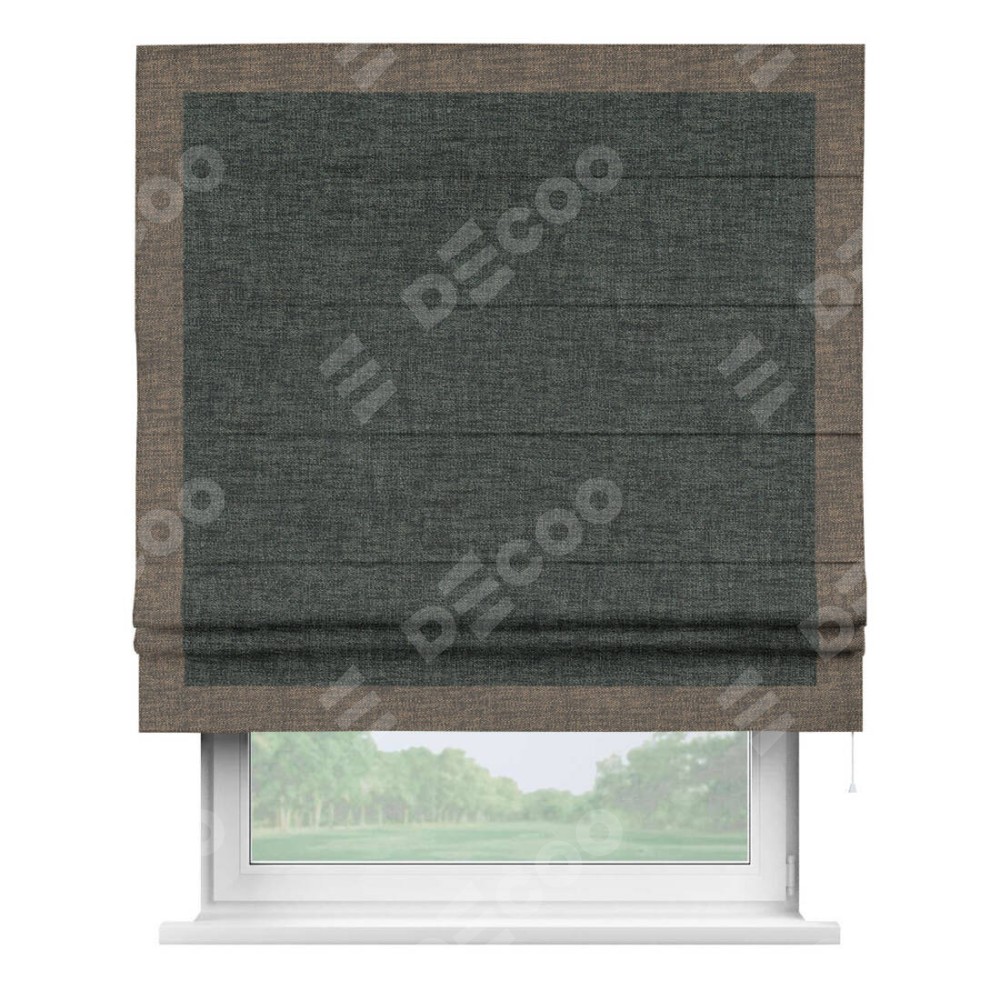 Римская штора «Кортин» с кантом Чесс, для проема, ткань рогожка димаут, графит
