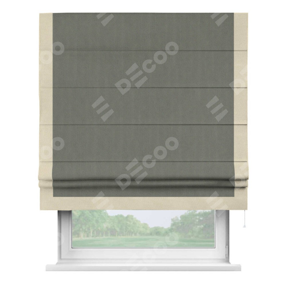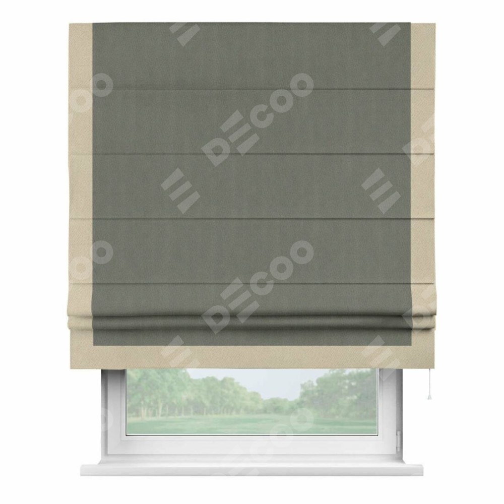 Римская штора «Кортин» с кантом Виктория, для проема, ткань блэкаут однотонный тёмно-серый
