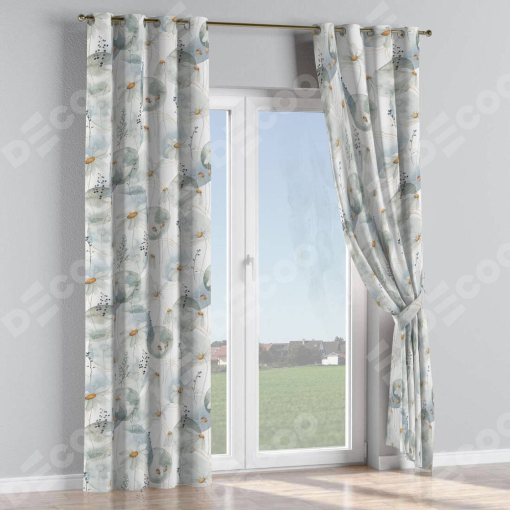 Комплект прямых штор, от производителя «Cortin», пошиты из ткани блэкаут с нанесением сублимационной печати «Ромашки акварель». Данная модель пошита на люверсах, комплектуется на выбор круглым карнизом и подходит для монтажа на стену или потолок. Прямые шторы на люверсах шьются по стандарту с коэффициентом 1/2 (на 100 см. ширины проёма 200 см. ширины ткани), отличительным преимуществом данной модели является простой способ монтажа. Достаточно повесить ее на трубу и штора готова!