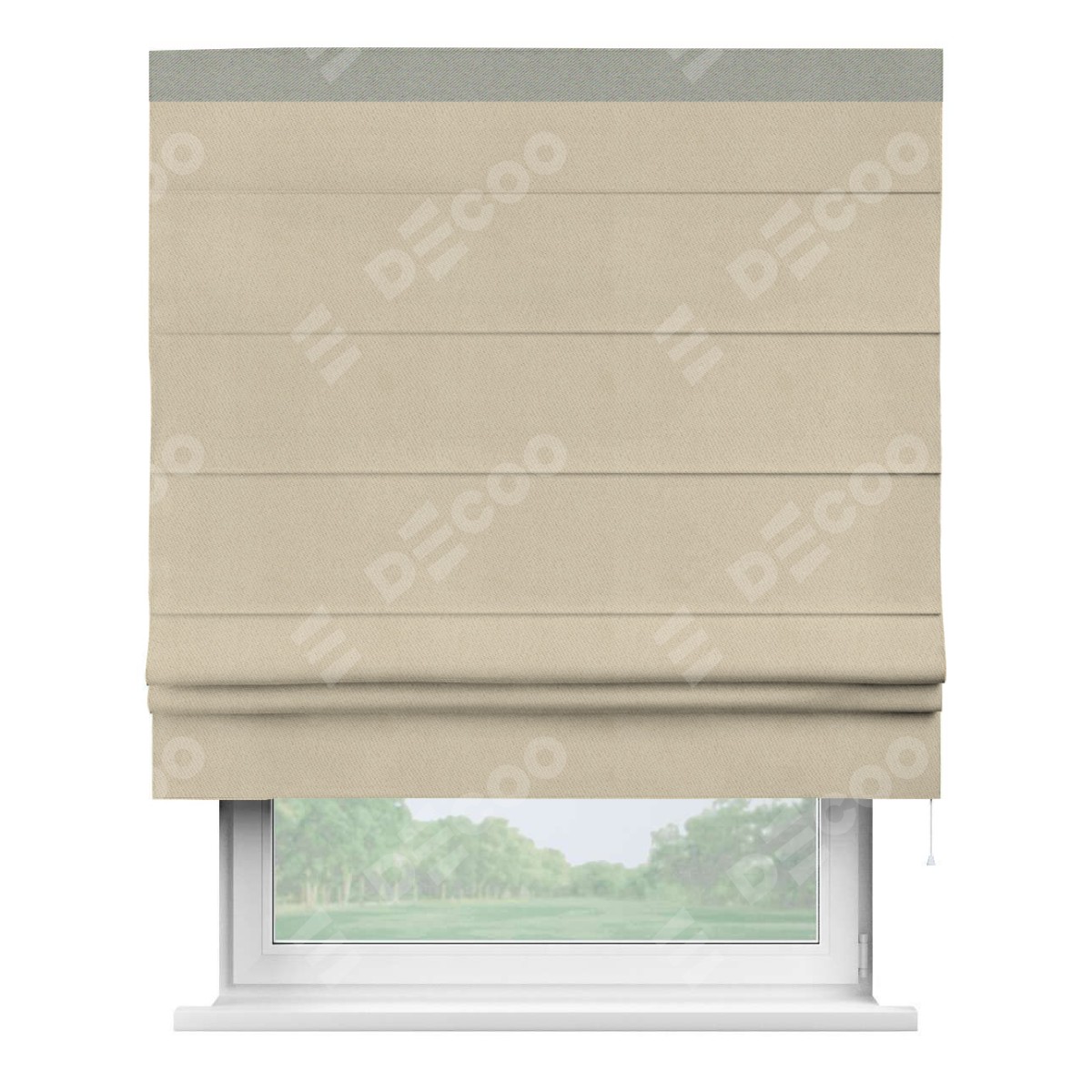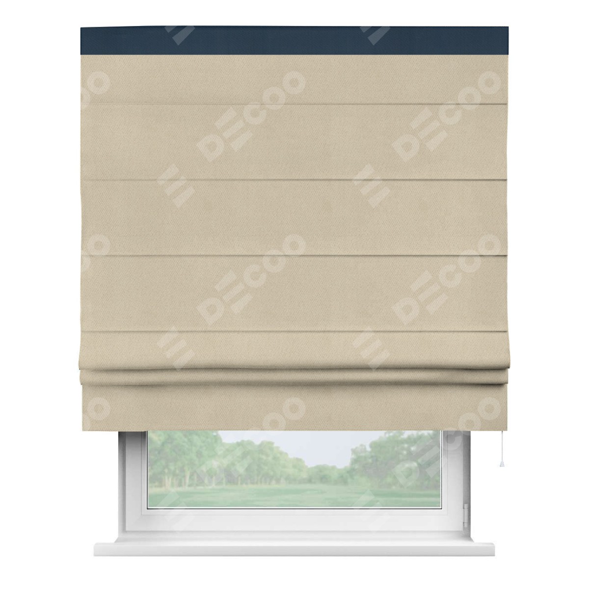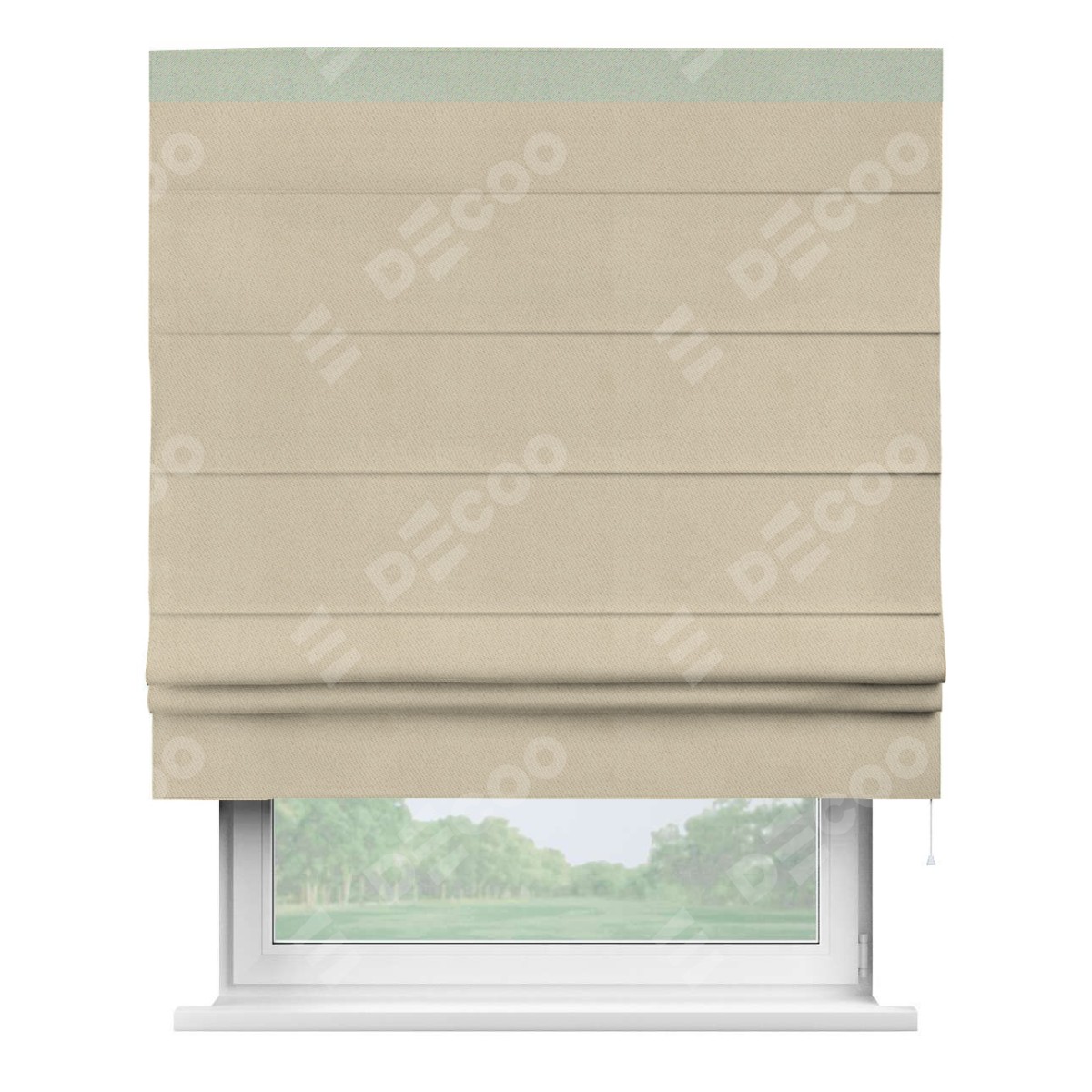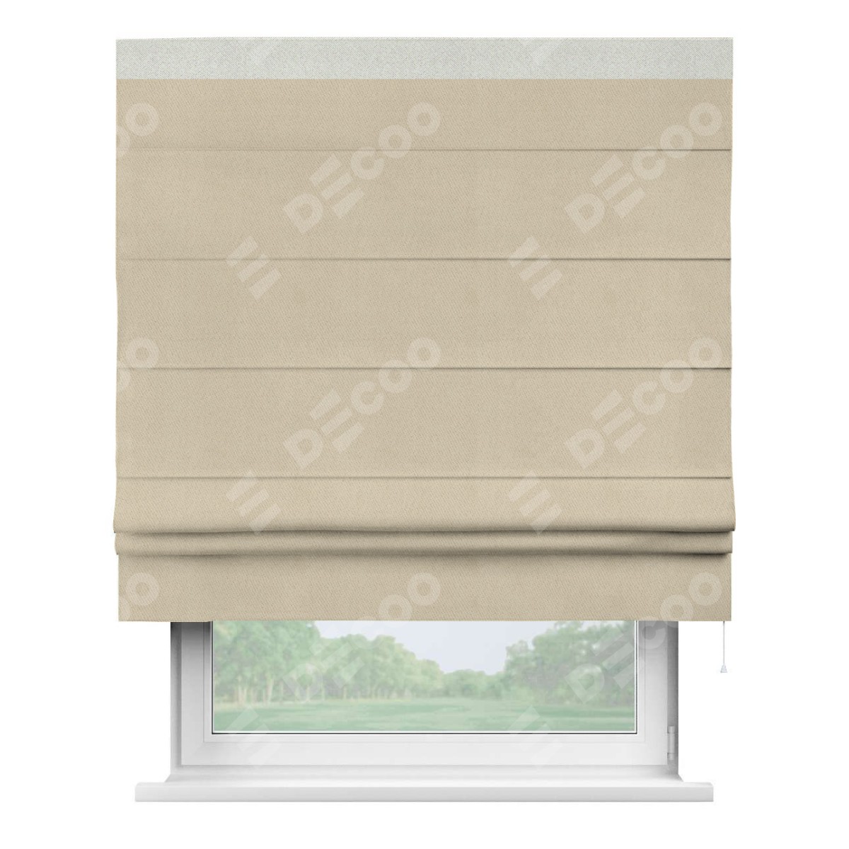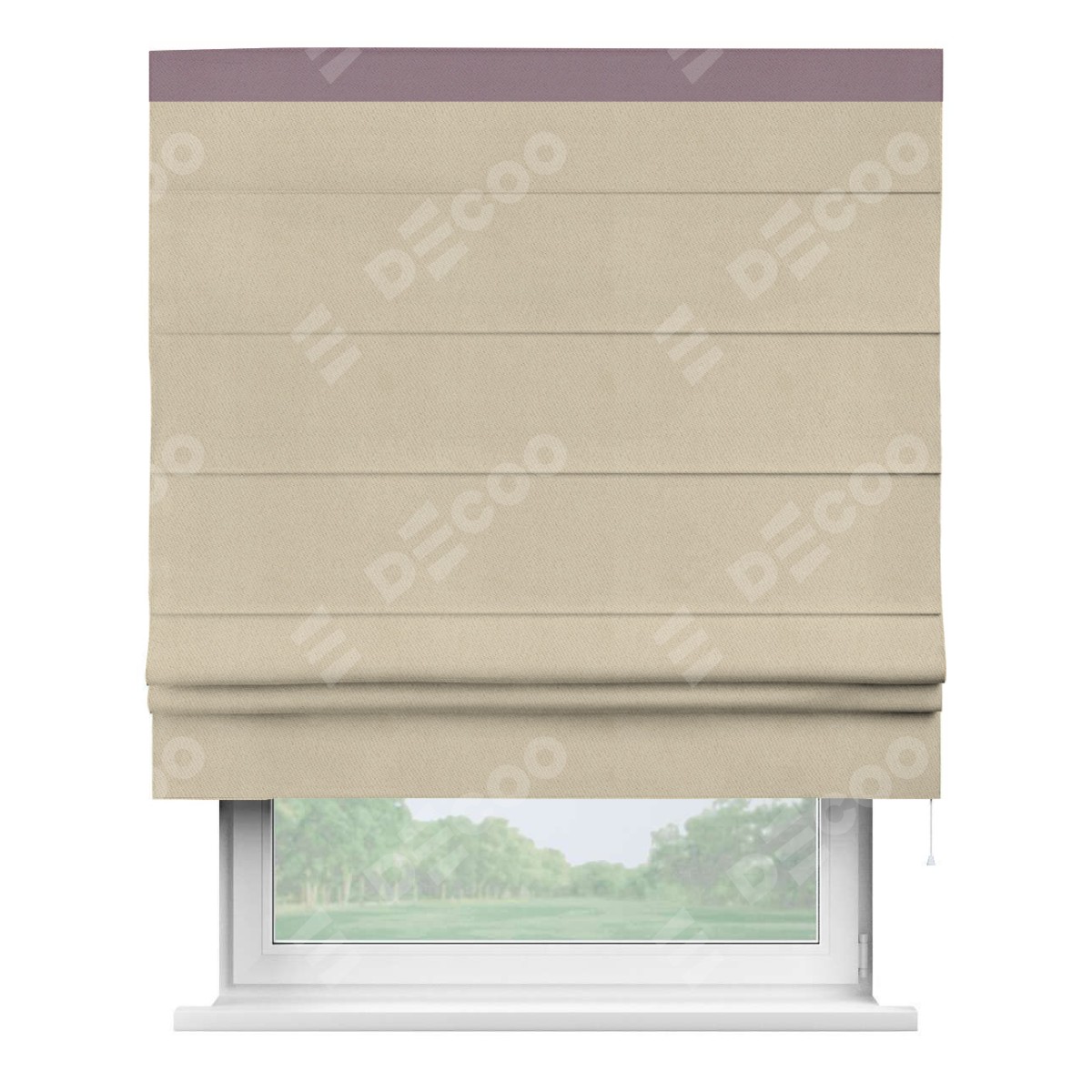 Римская штора производителя «Cortin», используется для проёма, пошита из ткани блэкаут однотонный кофейно-бежевый, артикул ткани 12095−1. Отделка шторы кантом «Кинг», ткань для канта используется из блэкаута однотонного разной расцветки на выбор. Имеет универсальный механизм и подходит для монтажа: на потолок, на стену и в нишу.