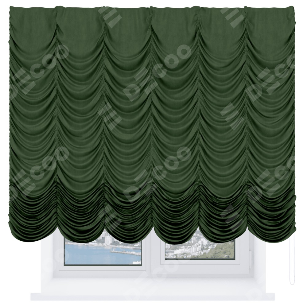 Французская штора «Кортин», вельвет тёмно-салатовый