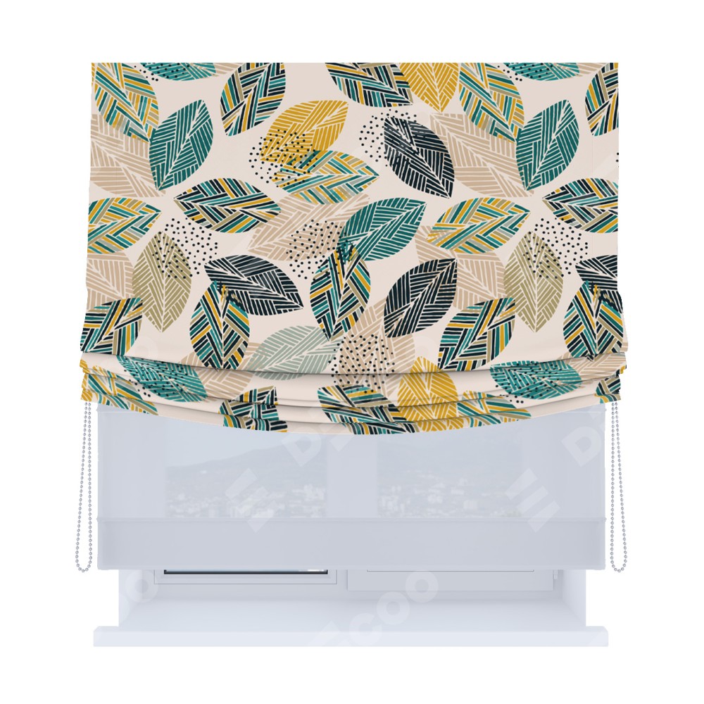 Римская штора «Кортин», день-ночь с мягкими складками, «Листья с орнаментом»