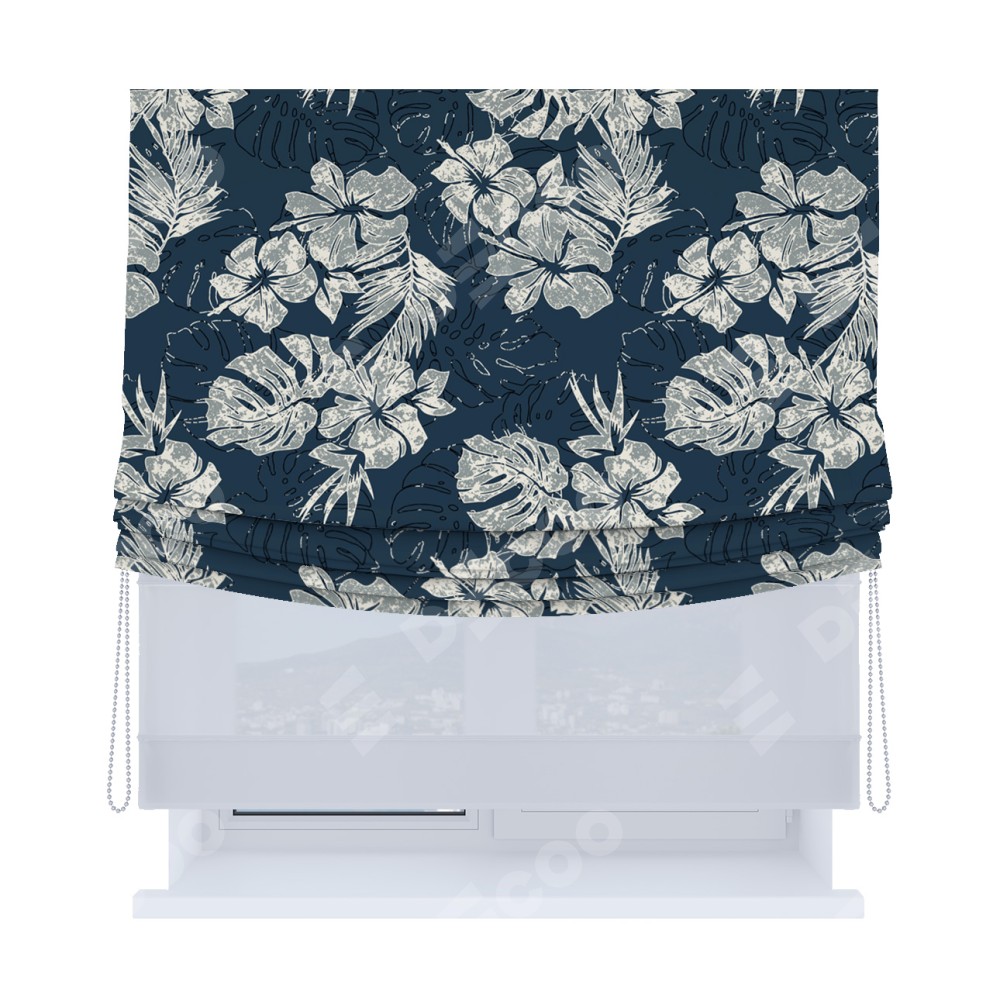 Цвет материала: В цветочек, Синий, С принтом, С рисунком, Тёмные