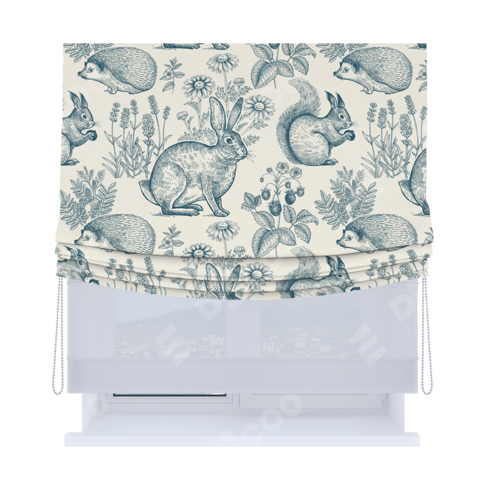 Римская штора день-ночь производителя «Cortin», используется для проёма, пошита из двух полотен, с лицевой блэкаут с нанесением сублимационной печати «На лугу», вторая ткань тюль (по стандарту комплектуется тюль белого цвета артикул V-01). Имеет универсальный механизм и подходит для монтажа: на потолок, на стену и в нишу. Удобное управление каждой шторой отдельно.