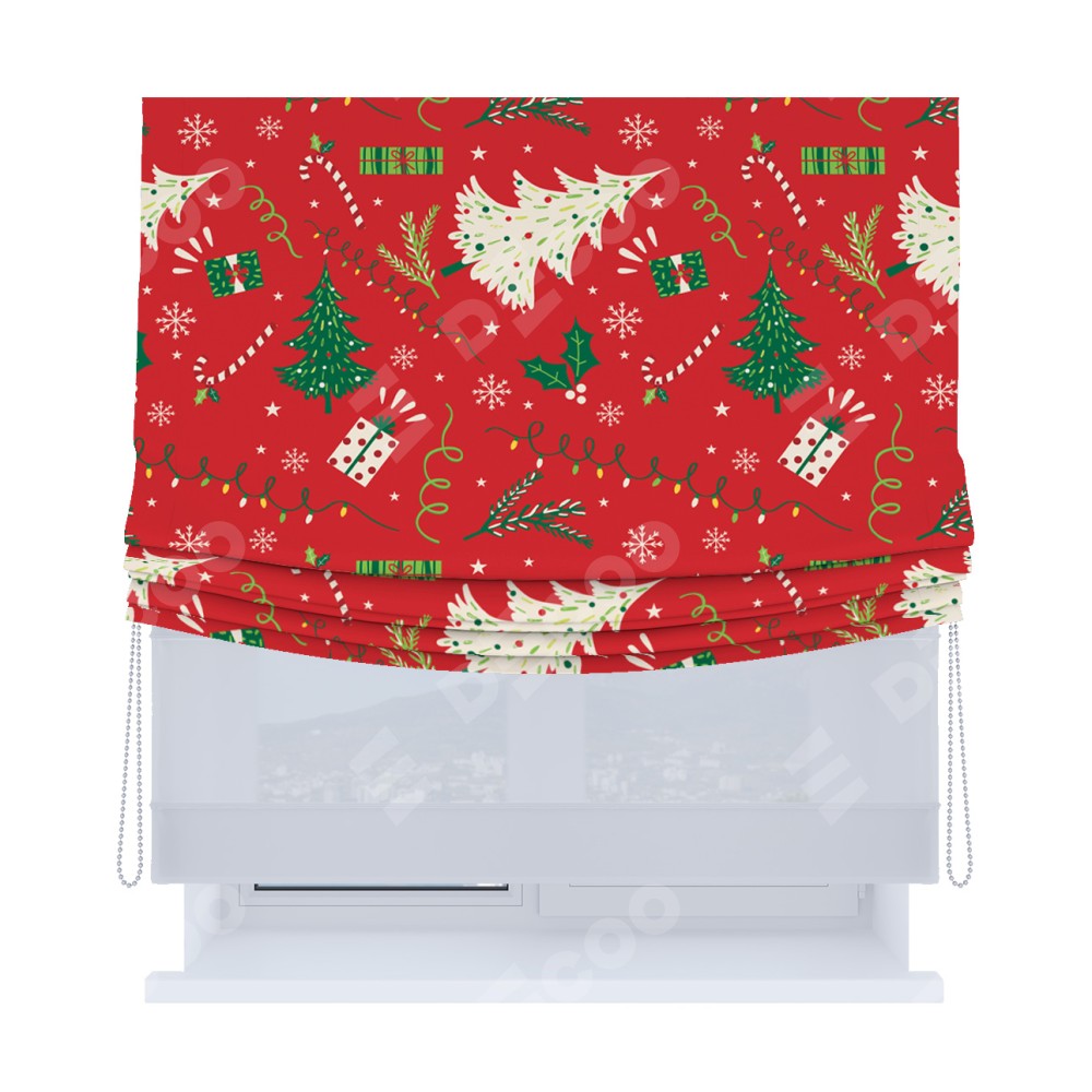Римская штора «Кортин», день-ночь с мягкими складками, «Новогодние подарки»