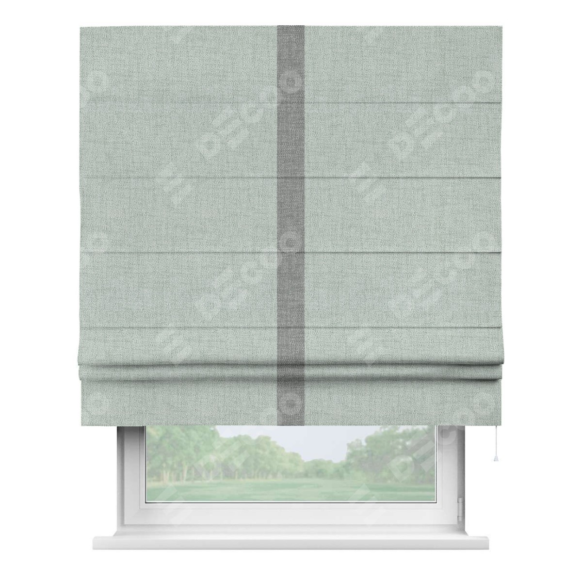 Римская штора производителя «Cortin», используется для проёма, пошита из ткани рогожка димаут серый, артикул 80426. Отделка шторы кантом «Хайвэй», ткань для канта используется из рогожки димаут разной расцветки на выбор. Имеет универсальный механизм и подходит для монтажа: на потолок, на стену и в нишу.