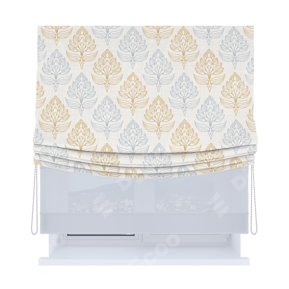 Римская штора «Кортин», день-ночь с мягкими складками, «Цветочный медальон»