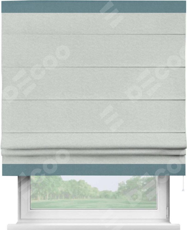 Римская штора производителя «Cortin», используется для проёма, пошита из ткани лён блэкаут белый, артикул 69451. Отделка шторы кантом «Горизонт», ткань для канта используется из льна разной расцветки на выбор. Имеет универсальный механизм и подходит для монтажа: на потолок, на стену и в нишу.