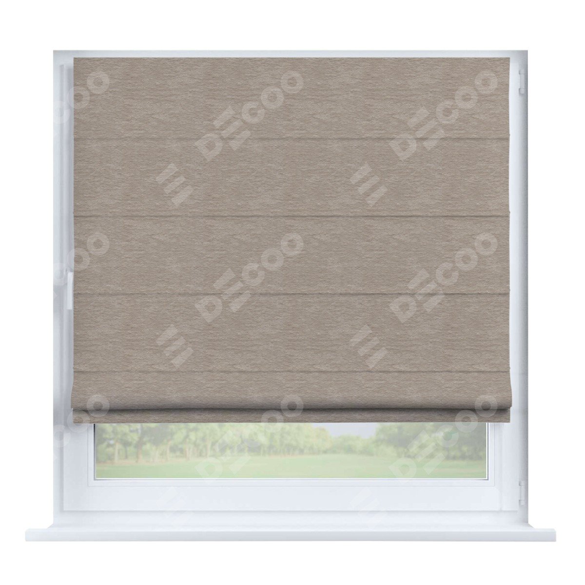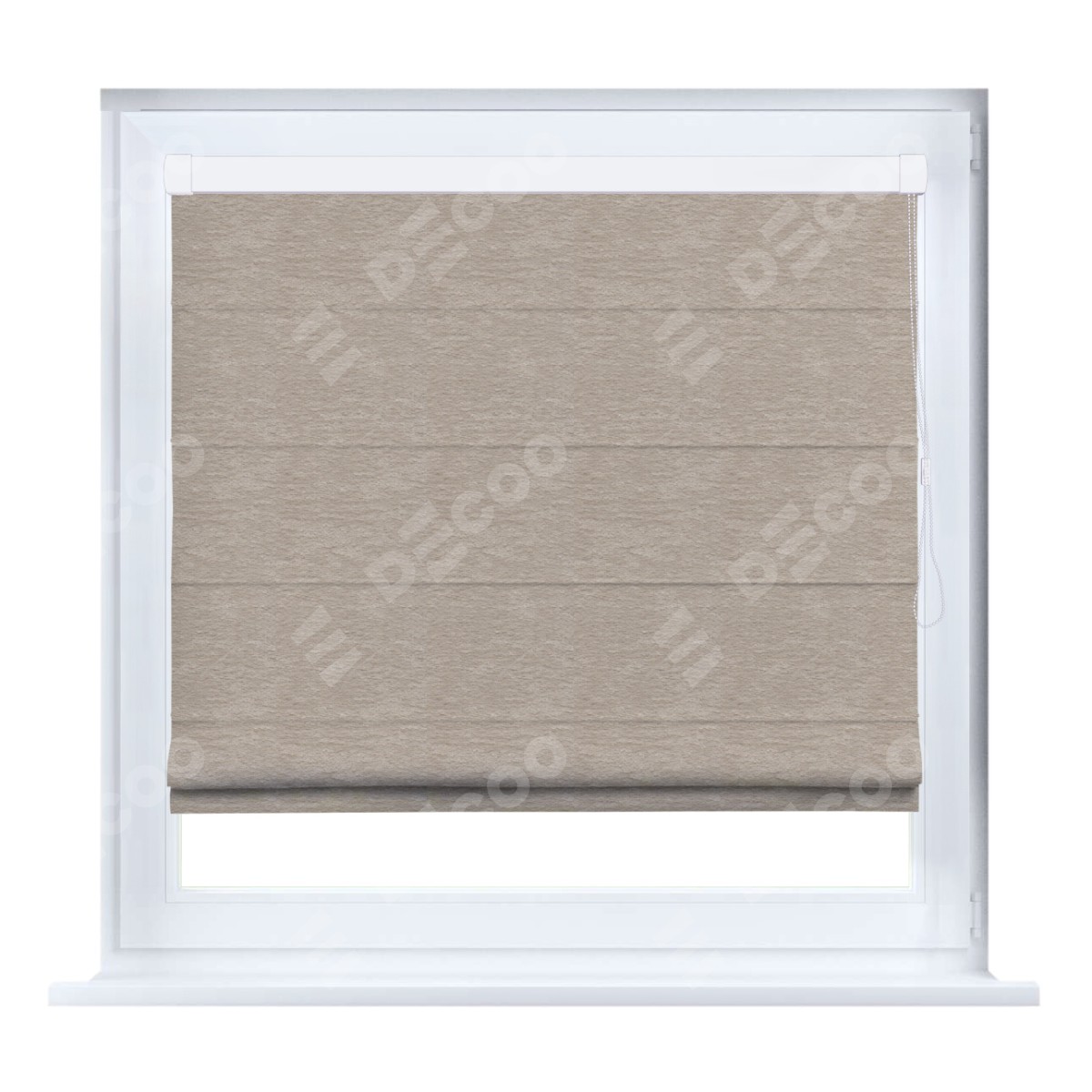 Римская штора производителя «Cortin», устанавливается на створку окна, пошита из ткани софт однотонный тёмно-бежевый, артикул 1640. Штора шьётся по индивидуальным размерам, для данного типа римской шторы возможная ширина от 35 до 150 см., высота до 250 см.