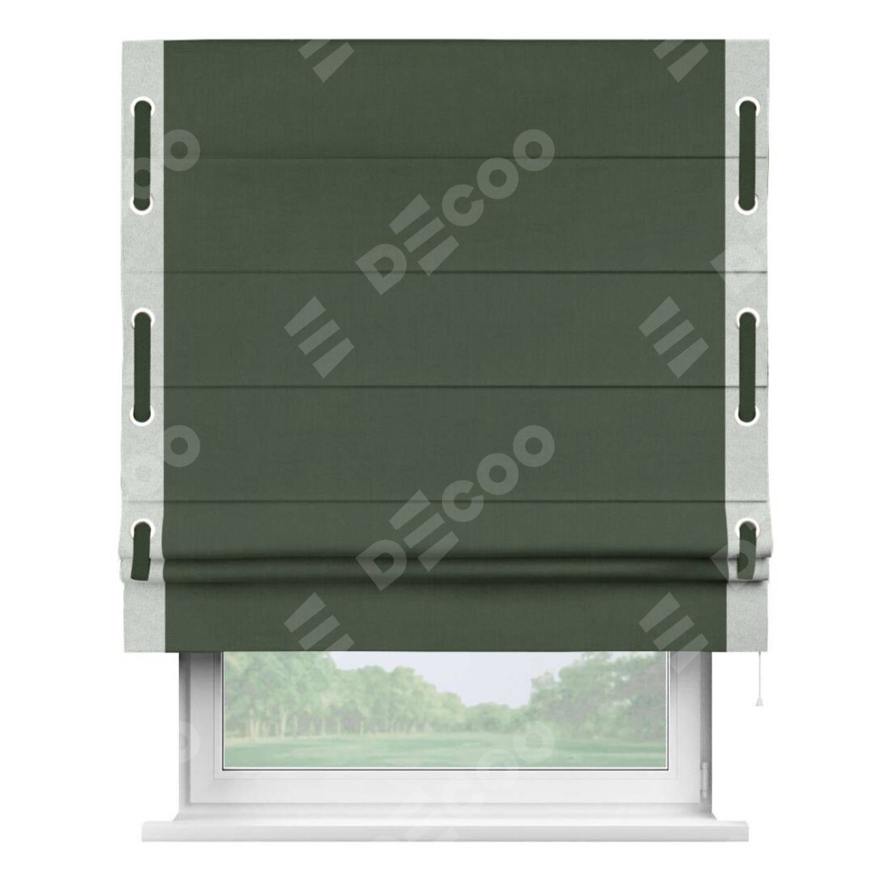 Римская штора «Кортин» с кантом Стрим Дуо (люверсы с пояском), для проема, лён блэкаут зелёный