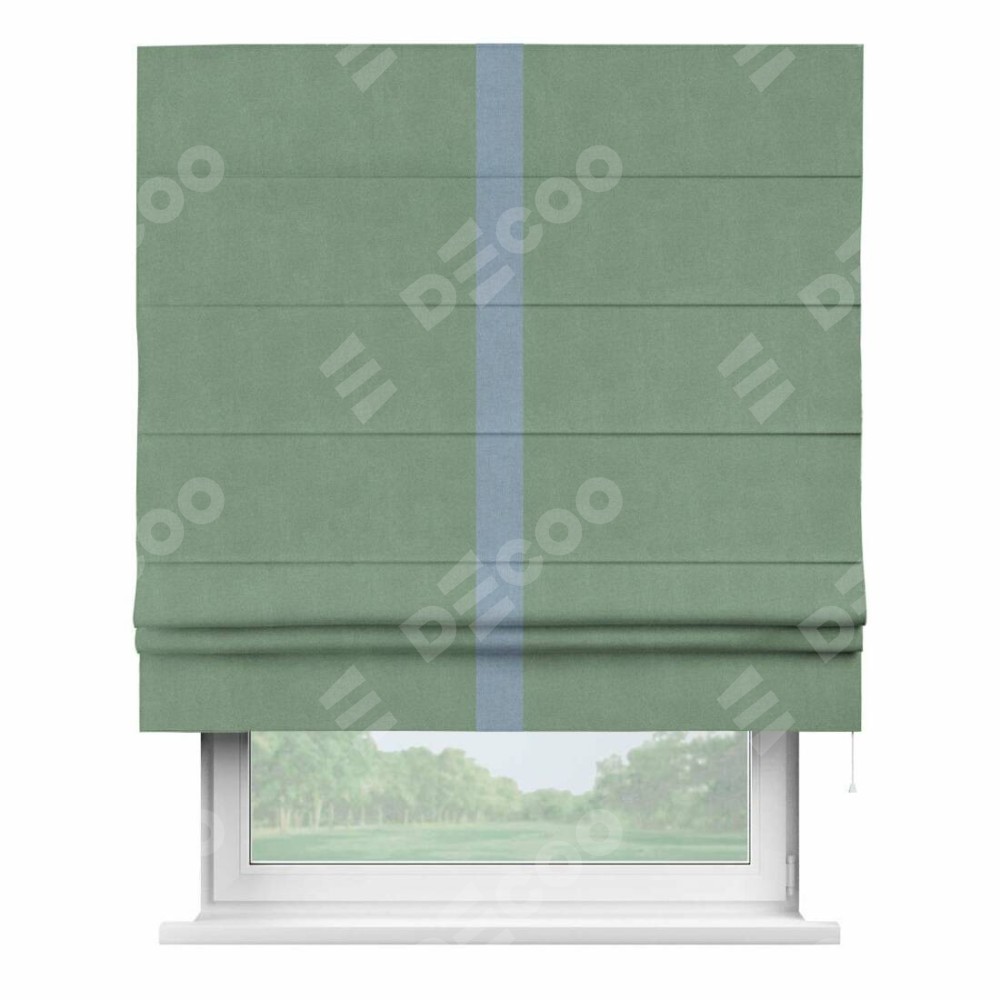 Римская штора «Кортин» с кантом Хайвэй, для проема, лён блэкаут светло-бирюзовый