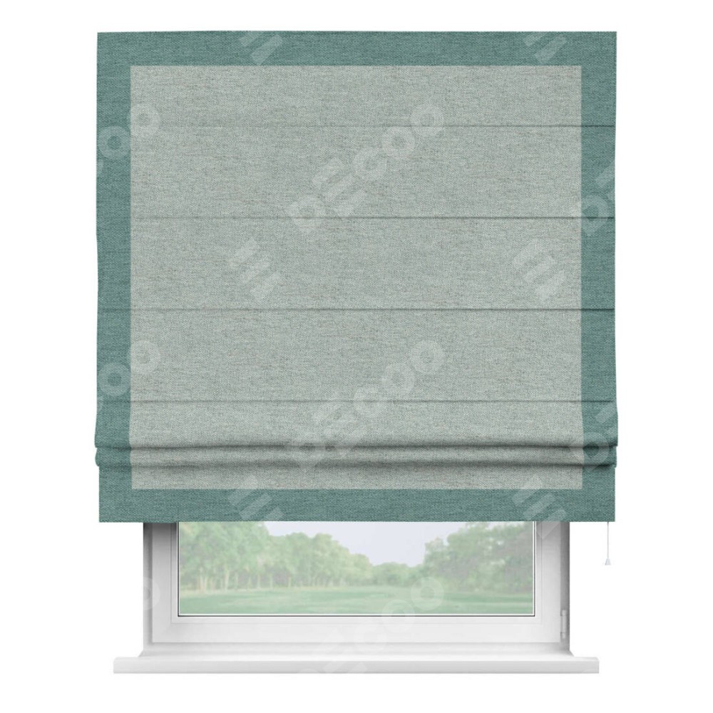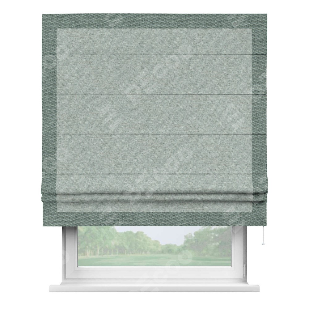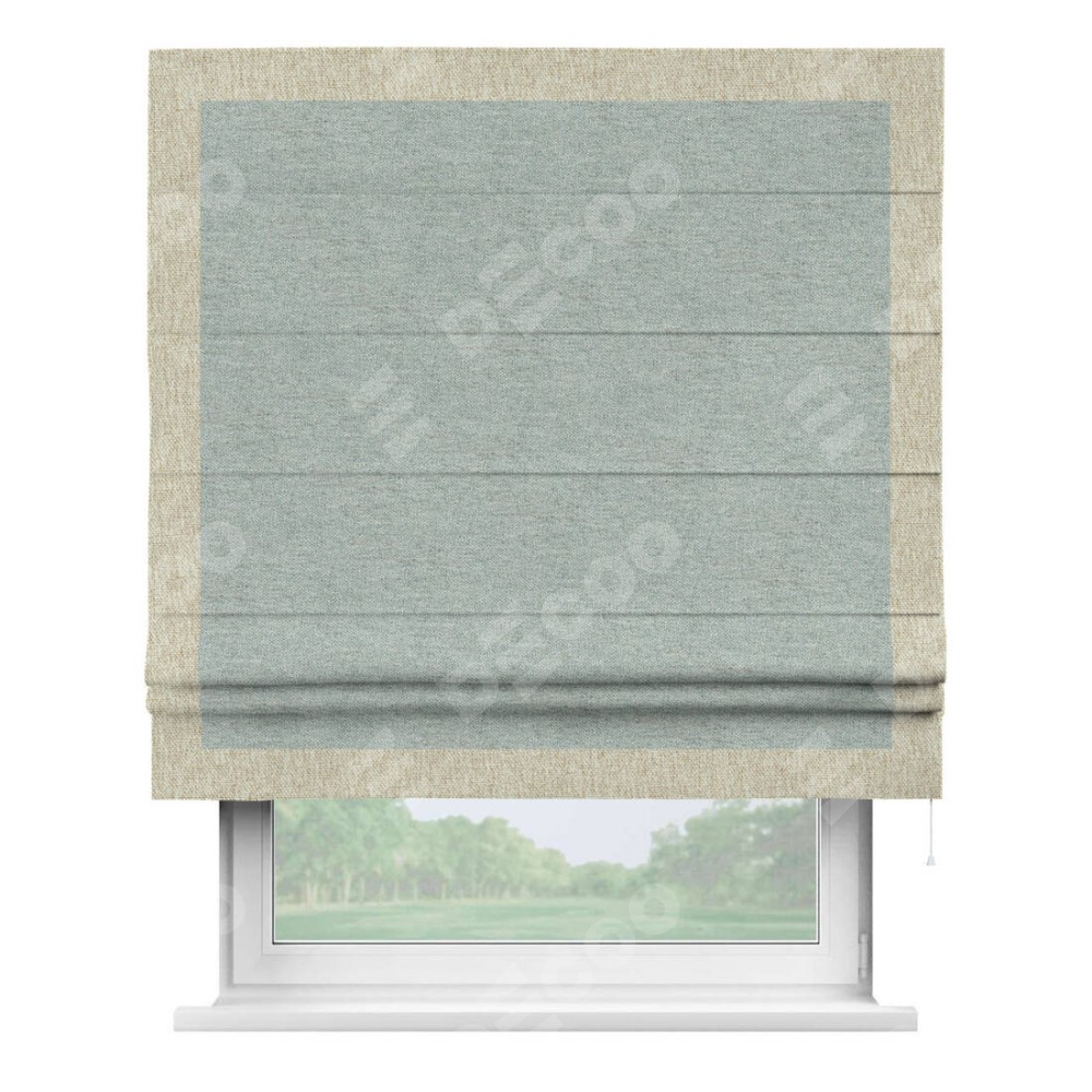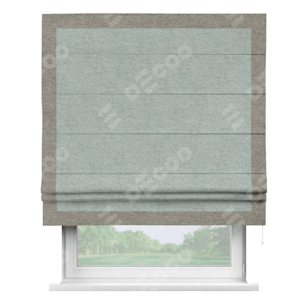 Римская штора производителя «Cortin», используется для проёма, пошита из ткани стиф димаут светло-серый, артикул 44025. Отделка шторы кантом «Чесс», ткань для канта используется из стифа разной расцветки на выбор. Имеет универсальный механизм и подходит для монтажа: на потолок, на стену и в нишу.
