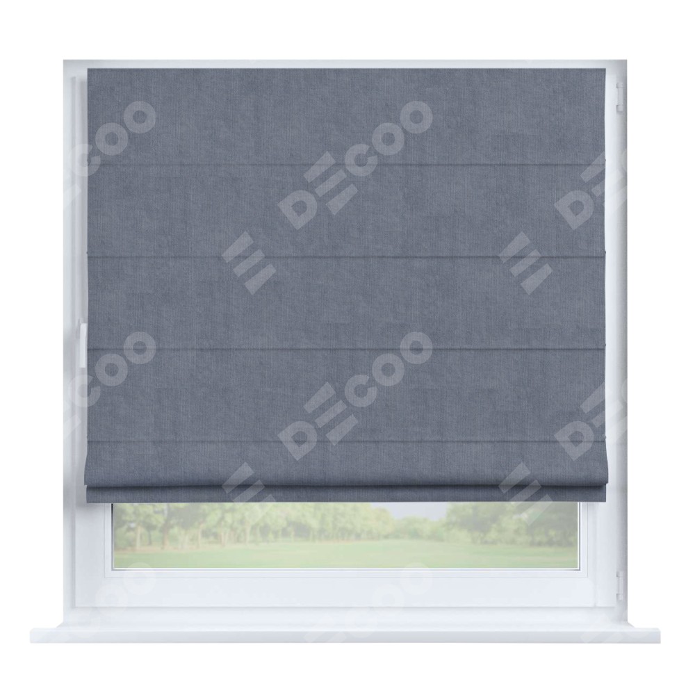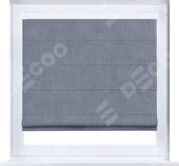 Римская штора производителя «Cortin», устанавливается на створку окна, пошита из ткани канвас васильковый, артикул v-203. Штора шьётся по индивидуальным размерам, для данного типа римской шторы возможная ширина от 35 до 150 см., высота до 250 см.