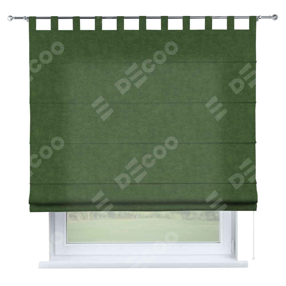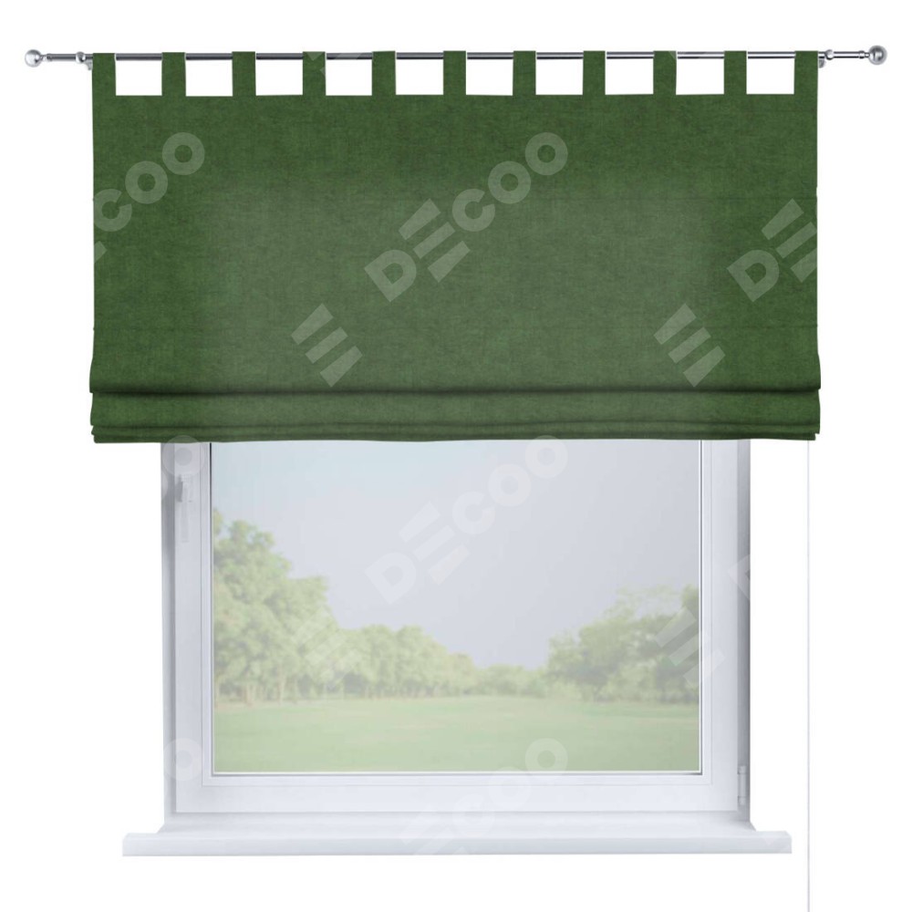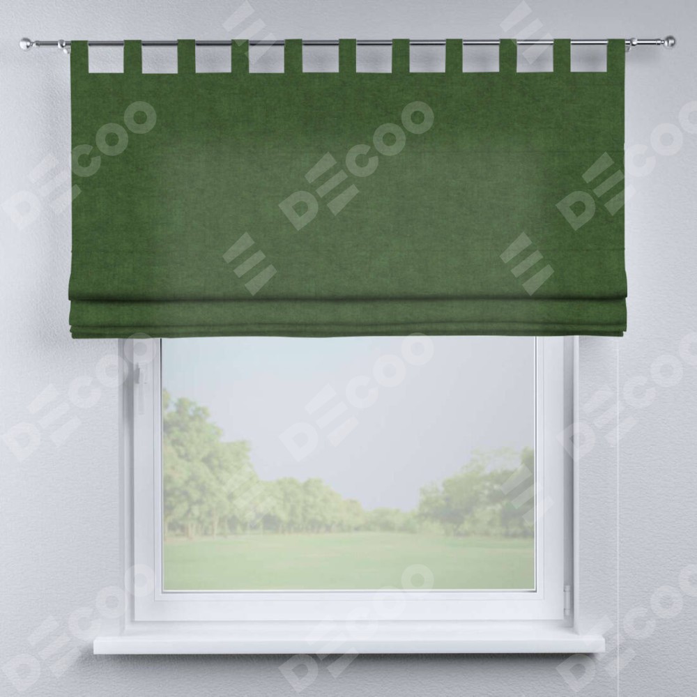 Римская штора производителя «Cortin», используется для проёма, пошита из ткани канвас зелёный, артикул ткани v-16. Данная модель пошита на петлях, комплектуется на выбор круглым карнизом и подходит для монтажа на стену. Римская штора на петлях имеет простую систему регулировки высоты, отличительным преимуществом данной модели является простой способ монтажа. Достаточно повесить ее на трубу и штора готова!