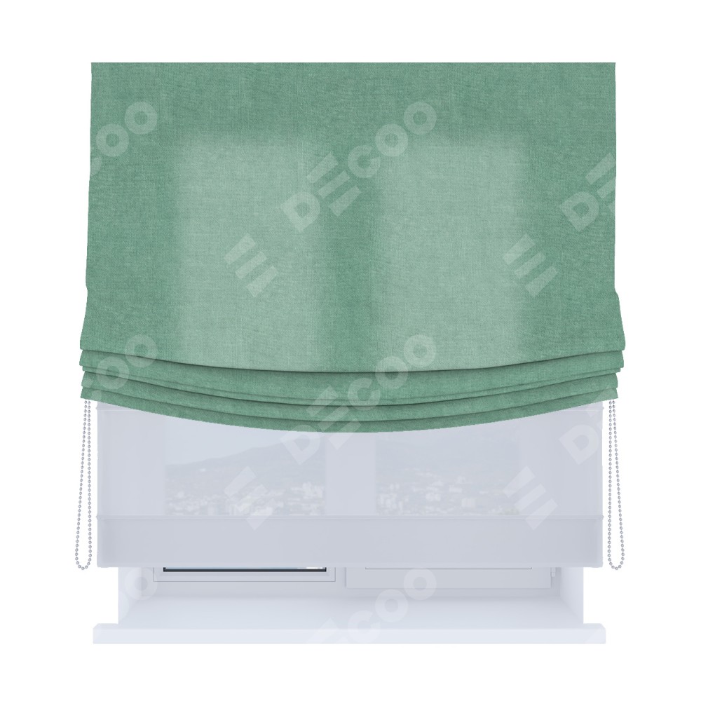 Римская штора день-ночь производителя «Cortin», используется для проёма, пошита из двух полотен, с лицевой стороны канвас мятный артикул v-248, вторая ткань тюль (по стандарту комплектуется тюль белого цвета артикул V-01). Имеет универсальный механизм и подходит для монтажа: на потолок, на стену и в нишу. Удобное управление каждой шторой отдельно.