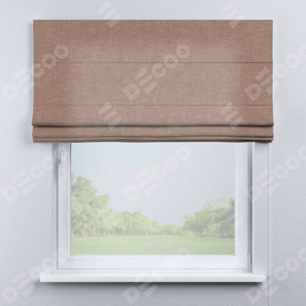 Римская штора производителя «Cortin», используется для проёма, пошита из ткани канвас розовая пудра, артикул ткани v-34. Имеет универсальный механизм и подходит для монтажа: на потолок, на стену и в нишу.