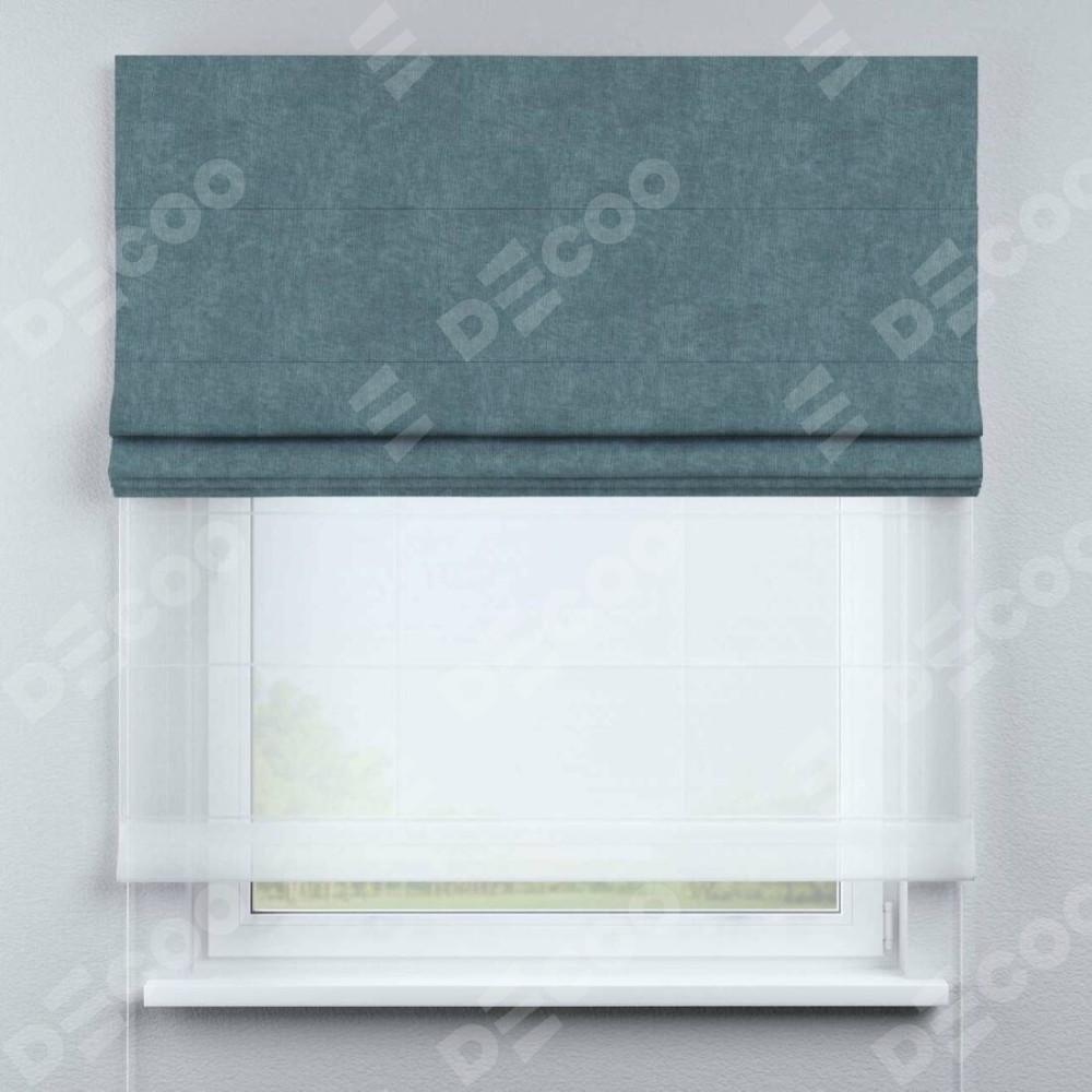 Римская штора «Кортин», канвас серо-голубой, день-ночь