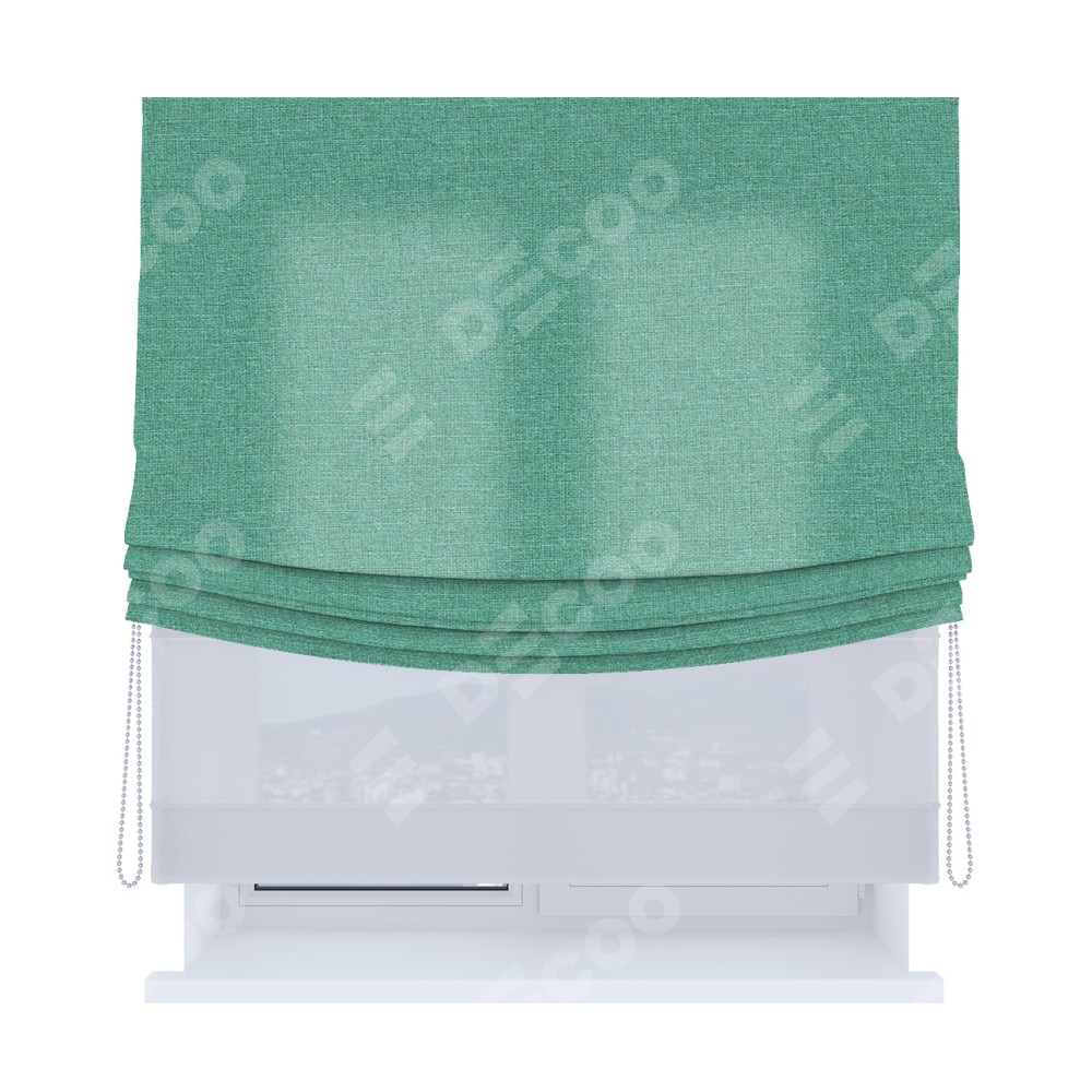 Римская штора «Кортин», лён светло-бирюзовый, день-ночь с мягкими складками
