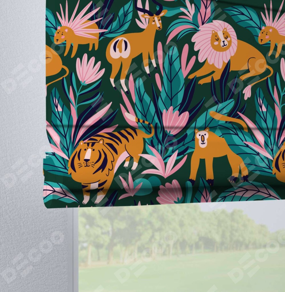 Римская штора «Кортин» на петлях «Дикие животные»