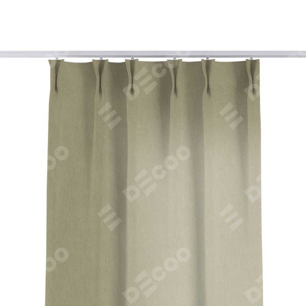 Комплект прямых штор, от производителя «Cortin», пошиты из ткани канвас латте, артикул ткани v-12490. С изнаночной стороны в верхней части штор пристрачивается шторная лента с декоративными складками «Кустик». Для создания элегантных складок прямые шторы шьются по стандарту с коэффициентом 1:2 (на 100 см. ширины проёма 200 см. ширины ткани).