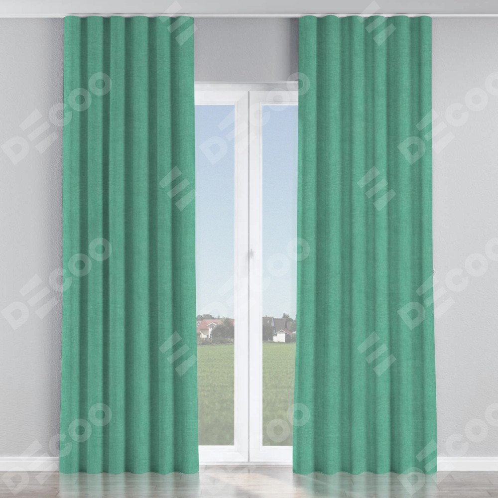 Комплект прямых штор, от производителя «Cortin», пошиты из ткани канвас мятный, артикул ткани v-248. С изнаночной стороны в верхней части штор пристрачивается шторная лента с декоративными складками «Волна». Для создания элегантных складок прямые шторы шьются по стандарту с коэффициентом 1:2 (на 100 см. ширины проёма 200 см. ширины ткани).