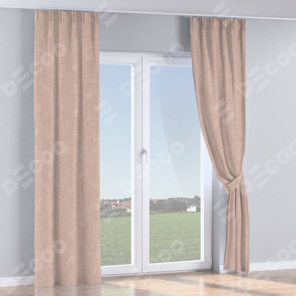 Комплект прямых штор, от производителя «Cortin», пошиты из ткани канвас пудровый, артикул ткани v-35. С изнаночной стороны в верхней части штор пристрачивается шторная лента с декоративными складками «Кустик». Для создания элегантных складок прямые шторы шьются по стандарту с коэффициентом 1:2 (на 100 см. ширины проёма 200 см. ширины ткани).