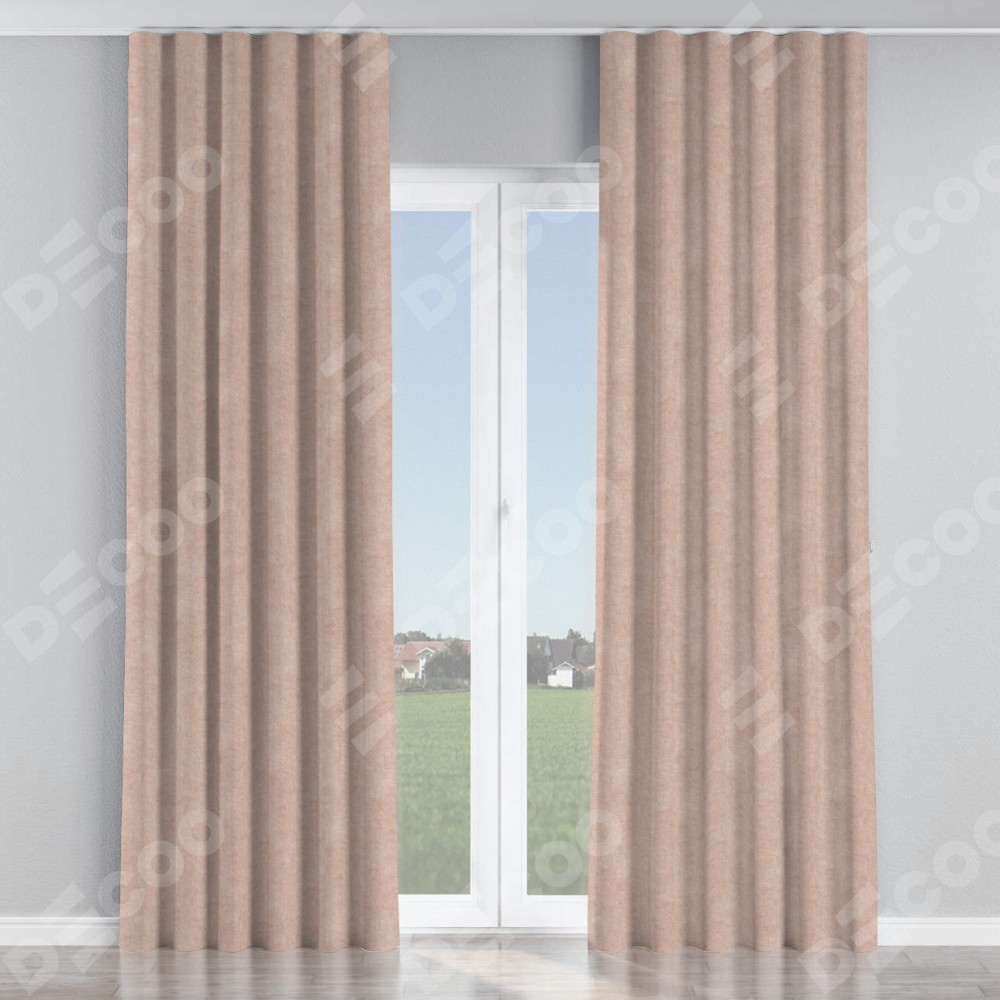 Комплект прямых штор, от производителя «Cortin», пошиты из ткани канвас пудровый, артикул ткани v-35. С изнаночной стороны в верхней части штор пристрачивается шторная лента с декоративными складками «Волна». Для создания элегантных складок прямые шторы шьются по стандарту с коэффициентом 1:2 (на 100 см. ширины проёма 200 см. ширины ткани).