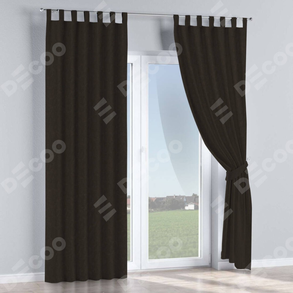 Комплект прямых штор, от производителя «Cortin», пошиты из ткани канвас тёмно-коричневый, артикул ткани v-13. Данная модель пошита на петлях, комплектуется на выбор круглым карнизом и подходит для монтажа на стену или потолок. Прямые шторы на петлях шьются по стандарту с коэффициентом 1/2 (на 100 см. ширины проёма 200 см. ширины ткани), отличительным преимуществом данной модели является простой способ монтажа. Достаточно повесить ее на трубу и штора готова!