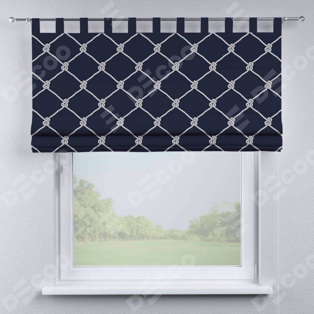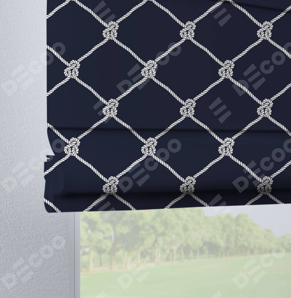 Римская штора производителя «Cortin», используется для проёма, пошита из ткани блэкаут с нанесением сублимационной печати «Морские веревки». Данная модель пошита на петлях, комплектуется на выбор круглым карнизом и подходит для монтажа на стену. Римская штора на петлях имеет простую систему регулировки высоты, отличительным преимуществом данной модели является простой способ монтажа. Достаточно повесить ее на трубу и штора готова!