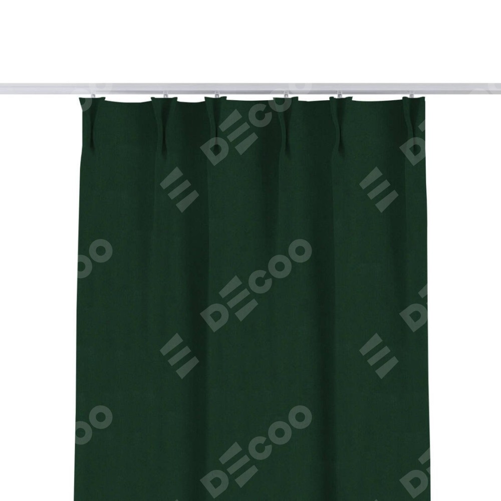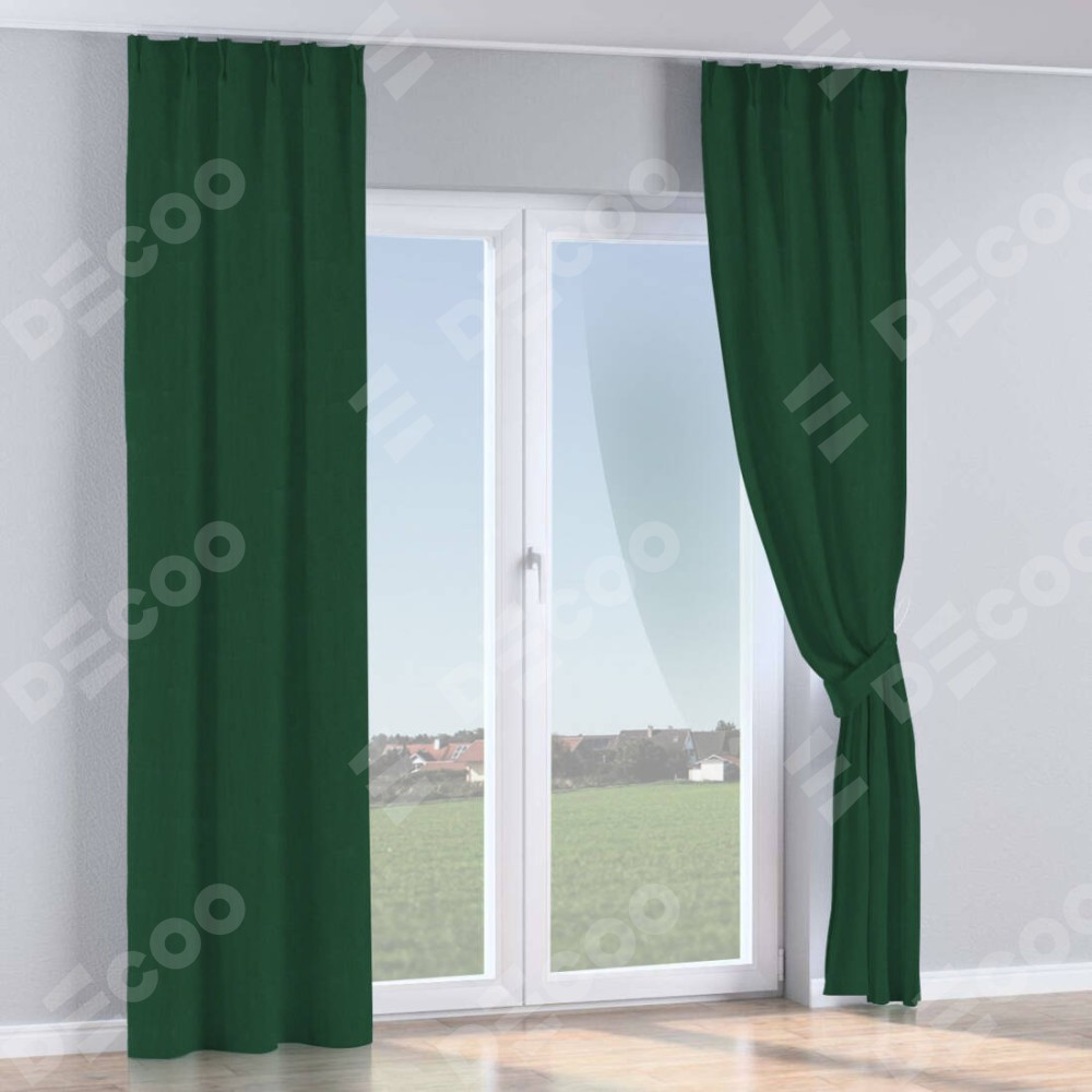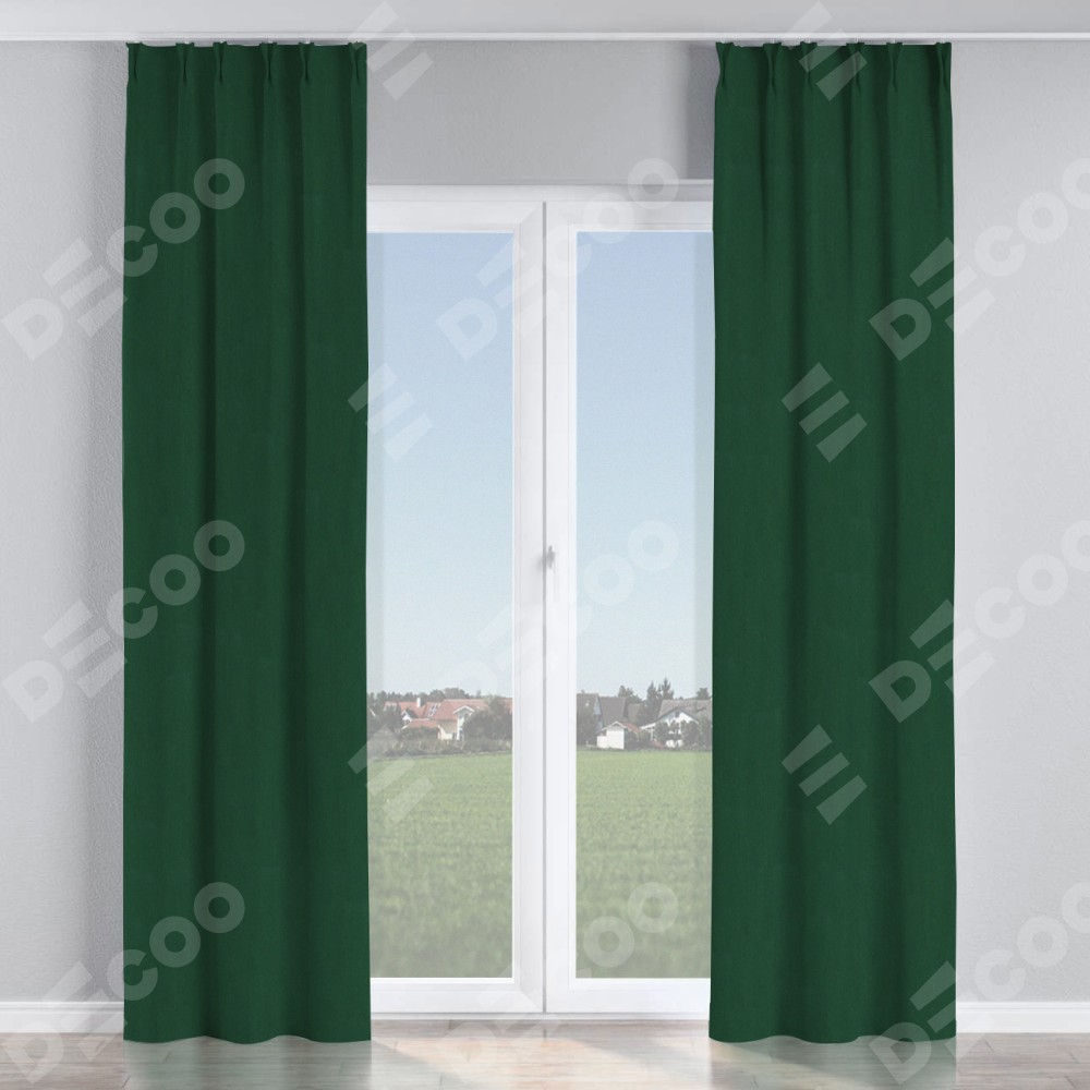 Комплект прямых штор, от производителя «Cortin», пошиты из ткани блэкаут однотонный зелёный, артикул ткани 91572−2. С изнаночной стороны в верхней части штор пристрачивается шторная лента с декоративными складками «Кустик». Для создания элегантных складок прямые шторы шьются по стандарту с коэффициентом 1:2 (на 100 см. ширины проёма 200 см. ширины ткани).