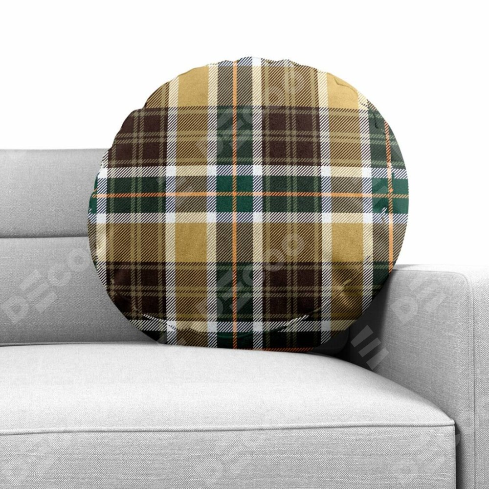 Подушка круглая Cortin «Бежево-зелёная клетка»