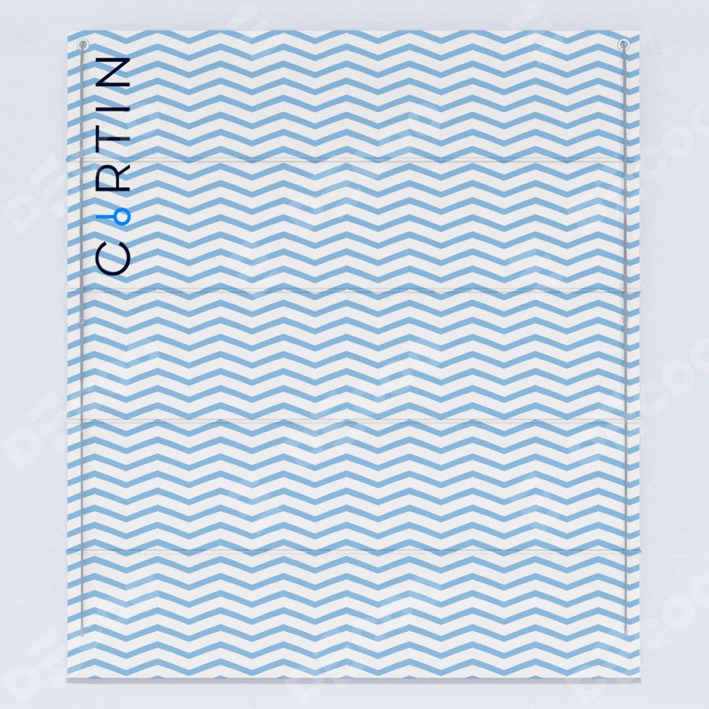 Римская штора день-ночь производителя «Cortin», используется для проёма, пошита из двух полотен, с лицевой блэкаут с нанесением сублимационной печати «Зигзаг мелкий», вторая ткань тюль (по стандарту комплектуется тюль белого цвета артикул V-01). Имеет универсальный механизм и подходит для монтажа: на потолок, на стену и в нишу.