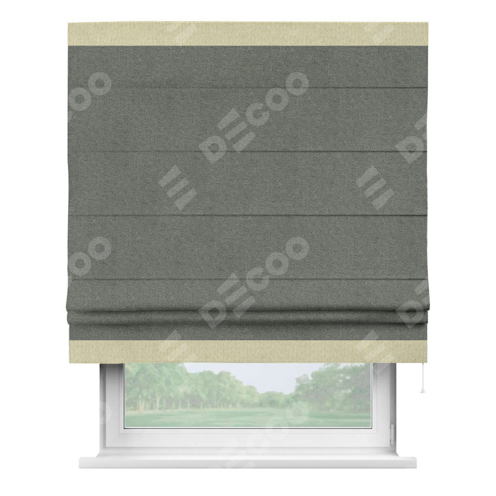 Римская штора «Кортин» с кантом Горизонт, для проема, ткань лён димаут, тёмно-серый