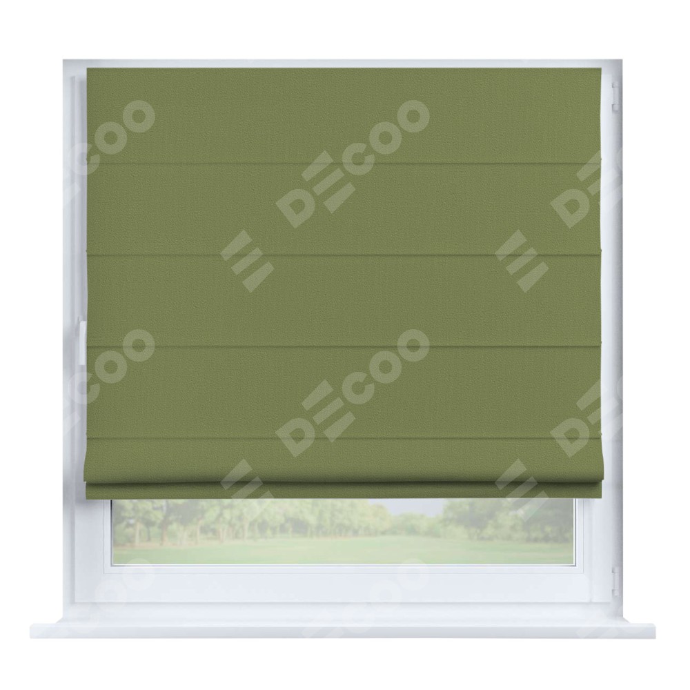 Римская штора производителя «Cortin», устанавливается на створку окна, пошита из ткани бархат золотая оливка, артикул 90725. Штора шьётся по индивидуальным размерам, для данного типа римской шторы возможная ширина от 35 до 150 см., высота до 250 см.