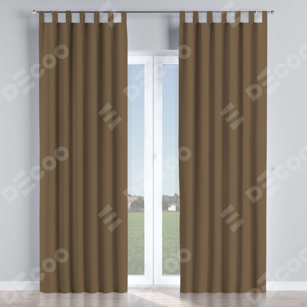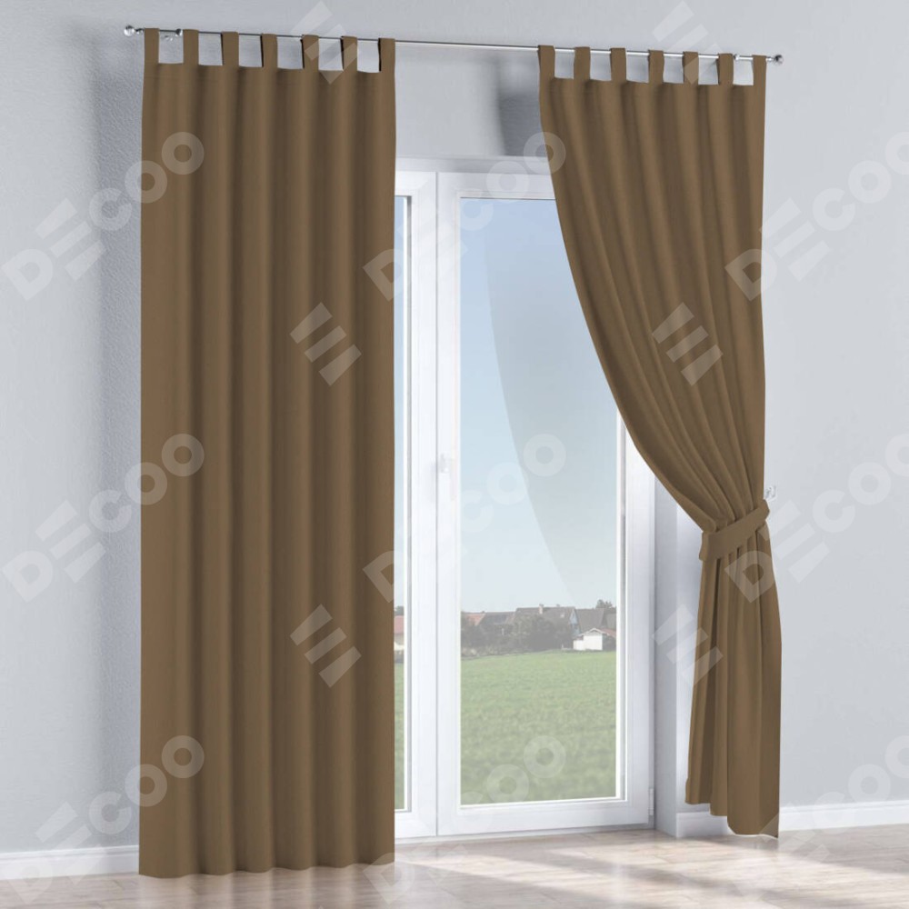 Комплект прямых штор, от производителя «Cortin», пошиты из ткани блэкаут однотонный коричневый, артикул ткани 91334. Данная модель пошита на петлях, комплектуется на выбор круглым карнизом и подходит для монтажа на стену или потолок. Прямые шторы на петлях шьются по стандарту с коэффициентом 1/2 (на 100 см. ширины проёма 200 см. ширины ткани), отличительным преимуществом данной модели является простой способ монтажа. Достаточно повесить ее на трубу и штора готова!