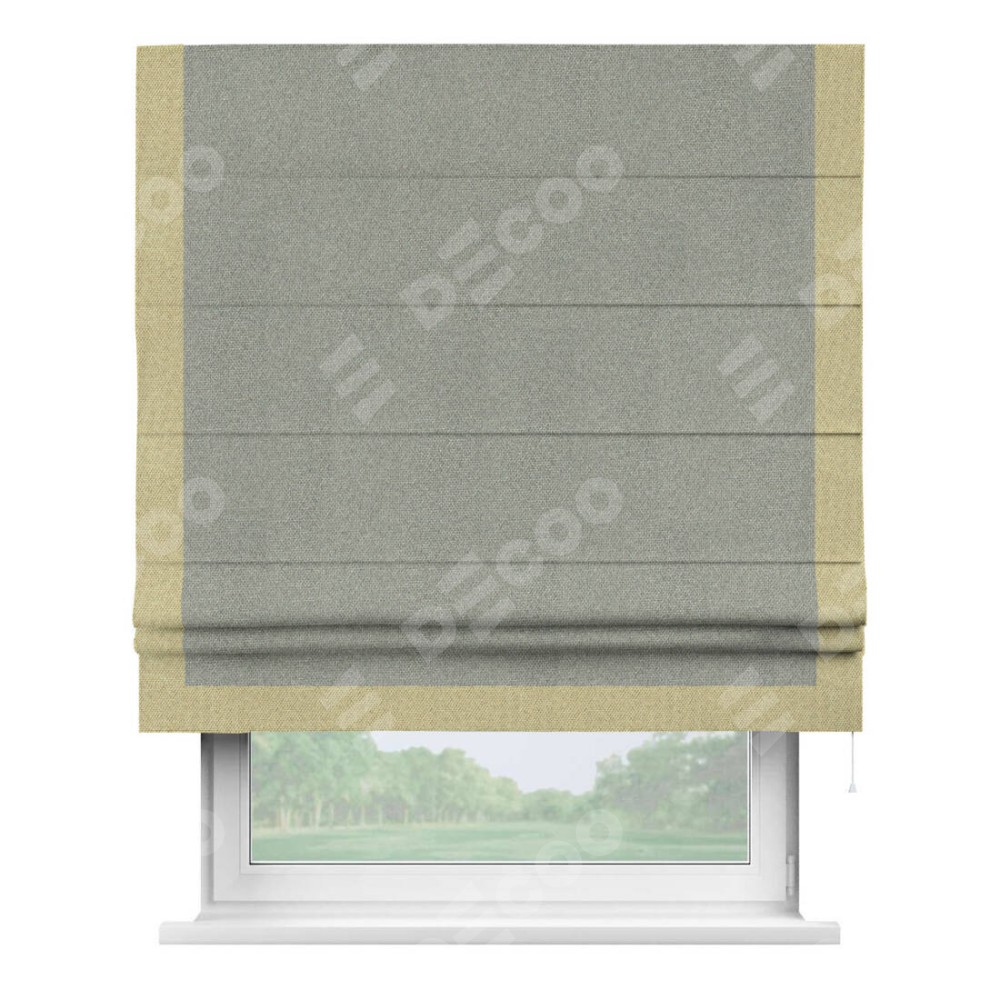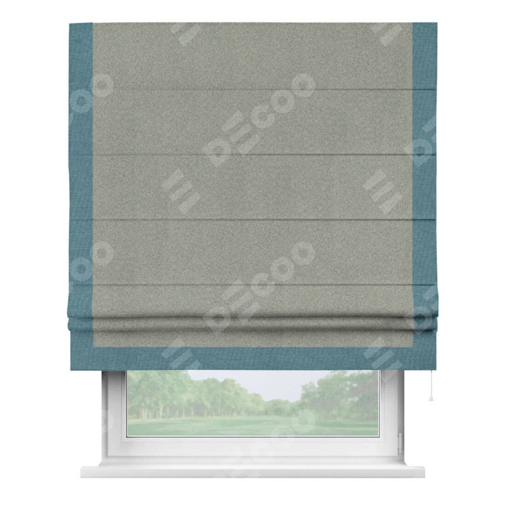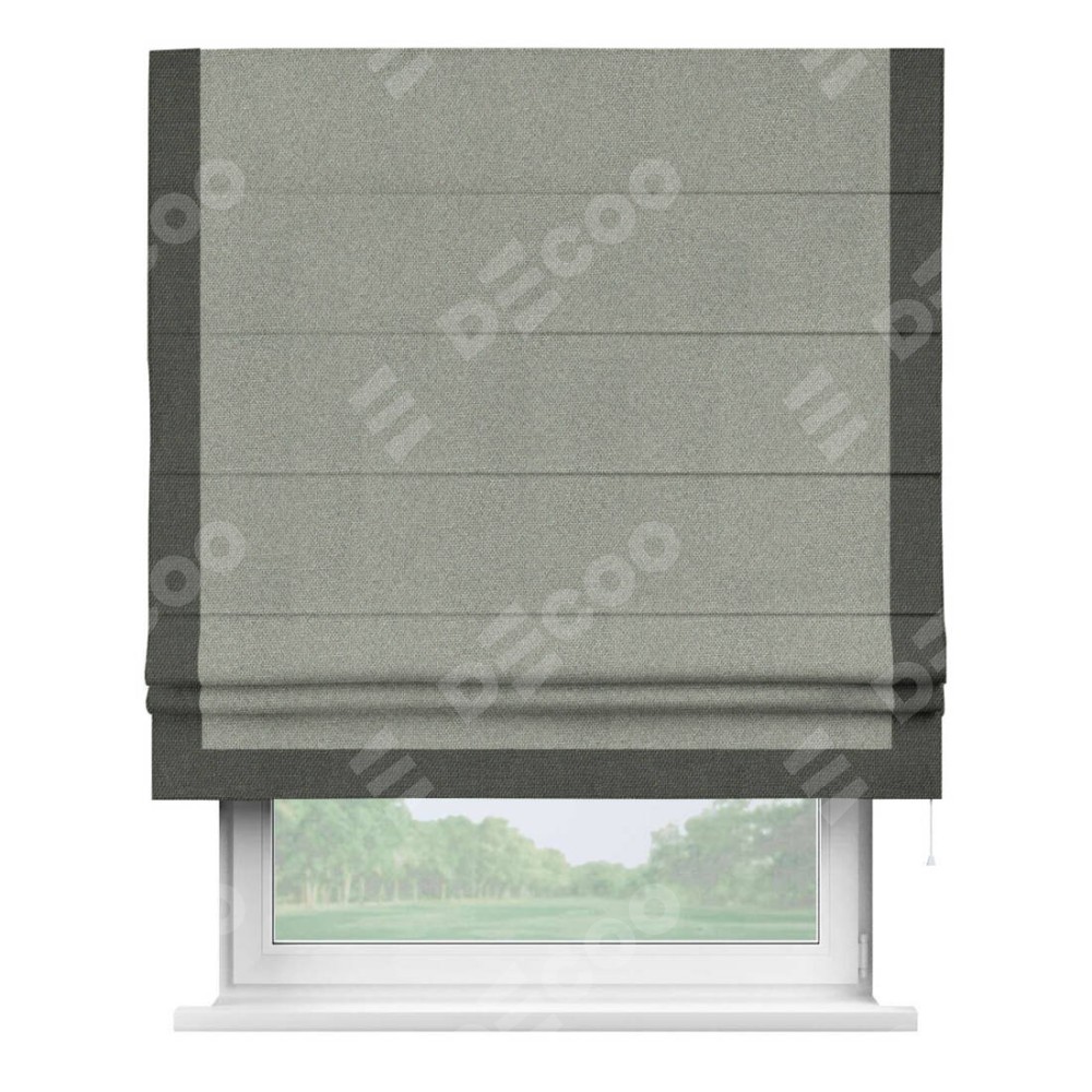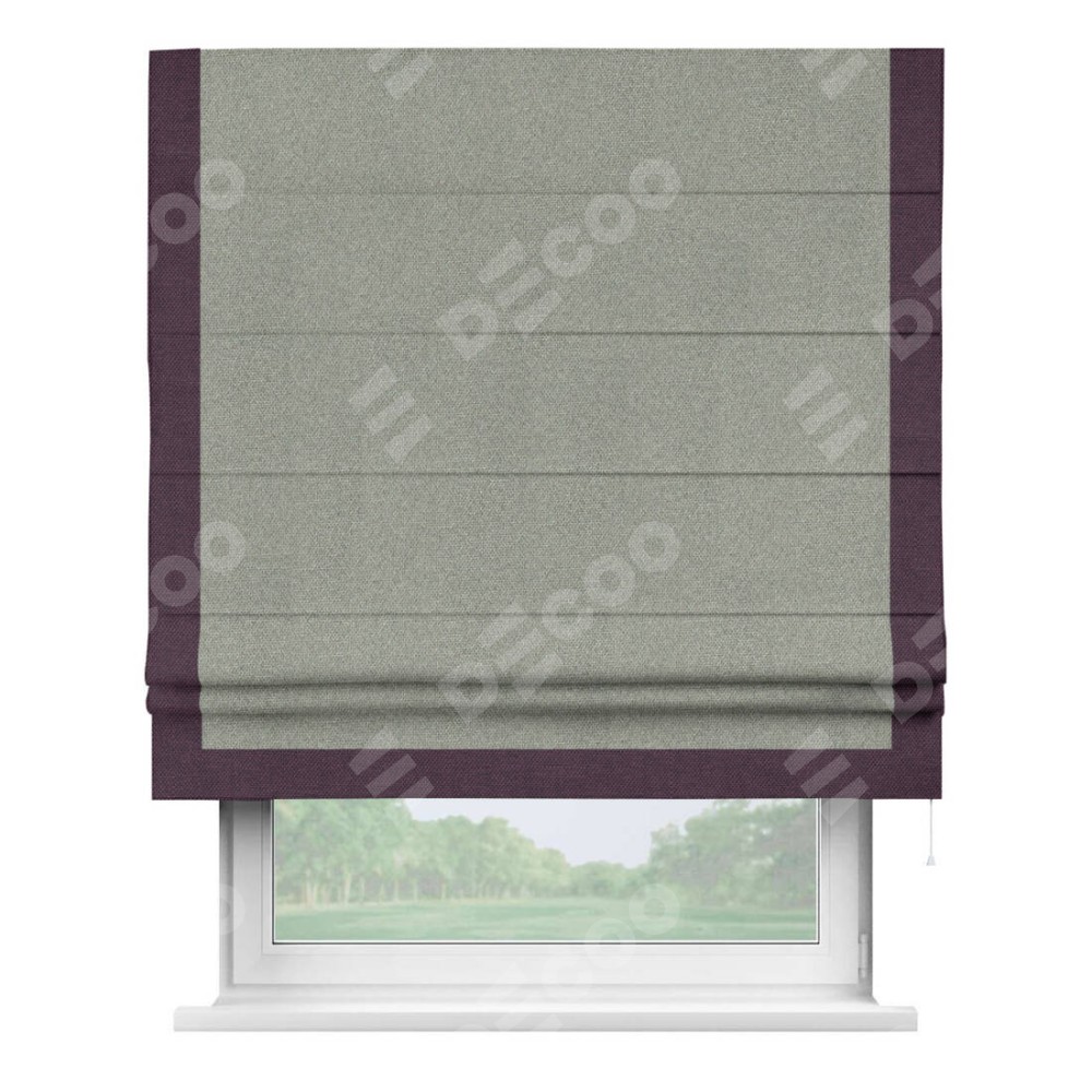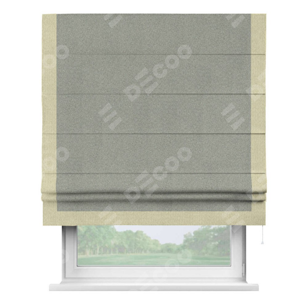 Римская штора «Кортин» для проема, лён димаут серый с кантом Виктория