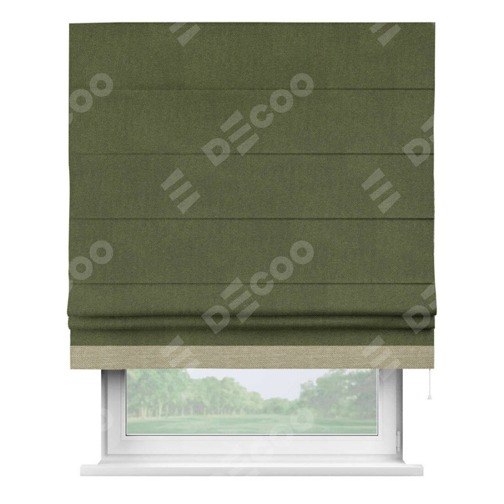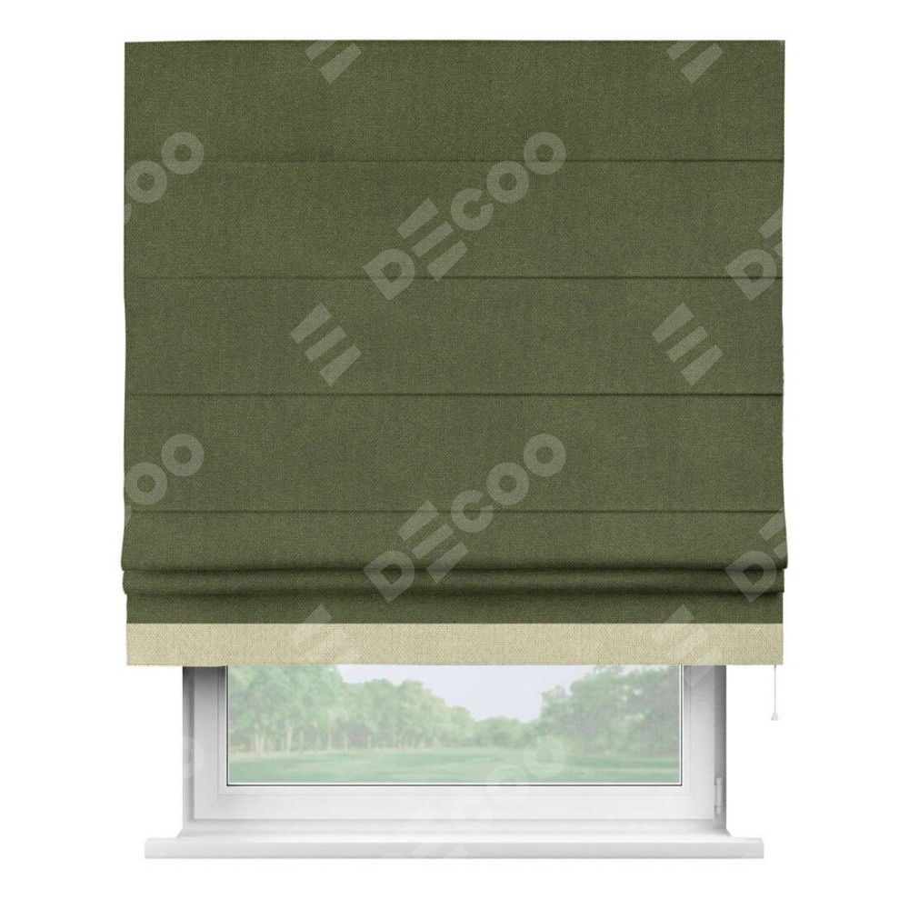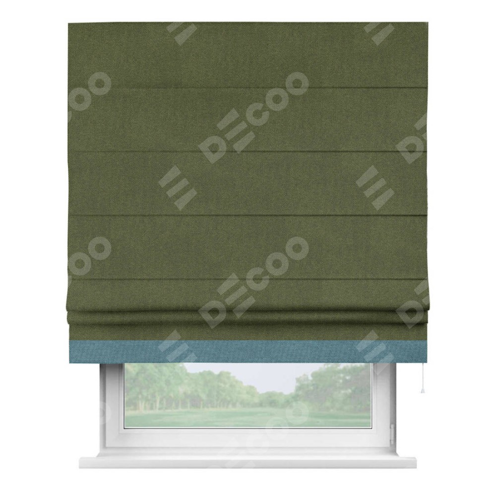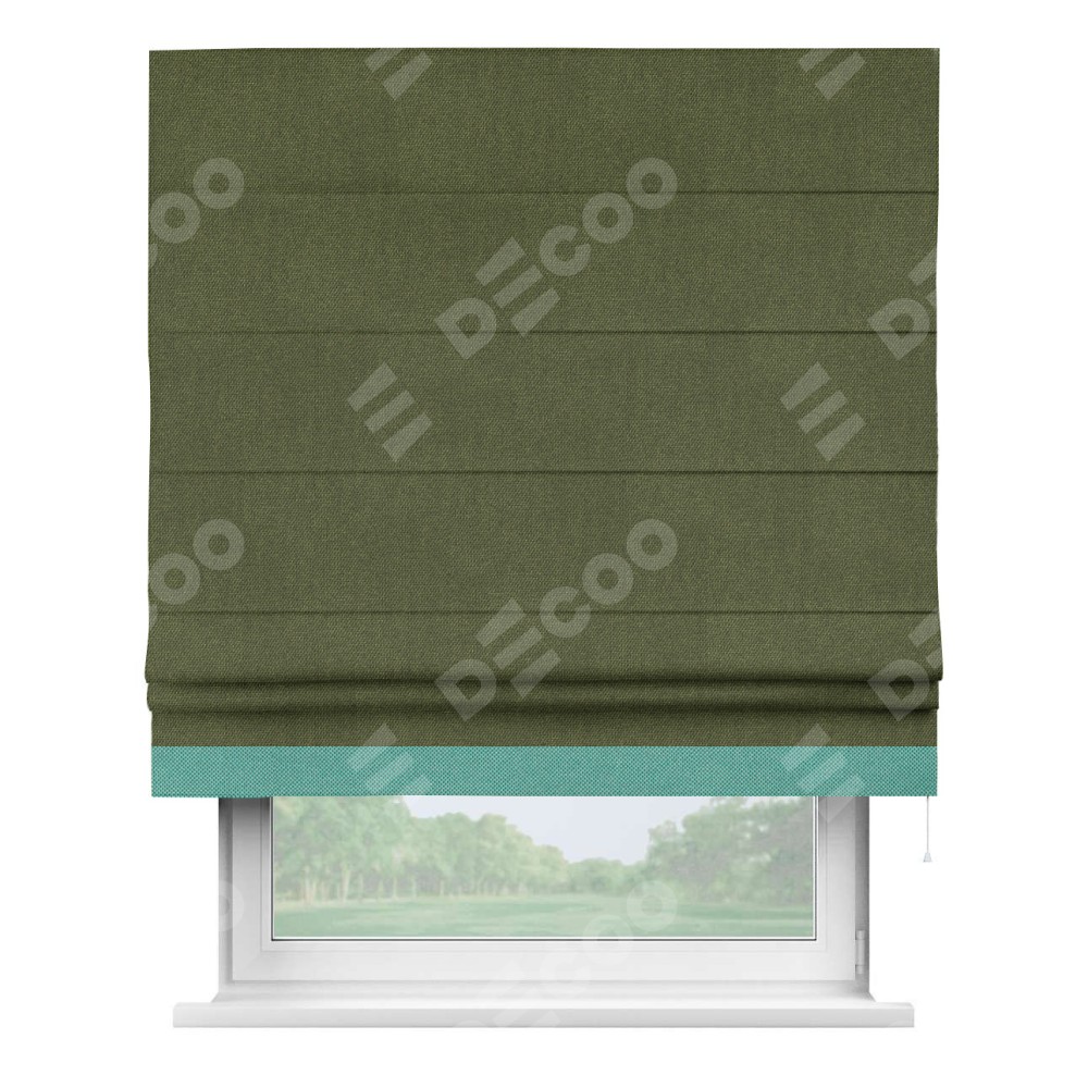 Римская штора «Кортин» для проема, лён димаут салатовый с кантом Джестер