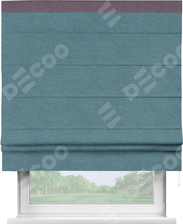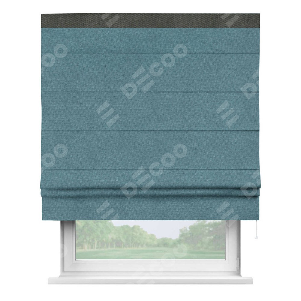 Римская штора «Кортин» для проема, лён димаут светло-синий с кантом Кинг