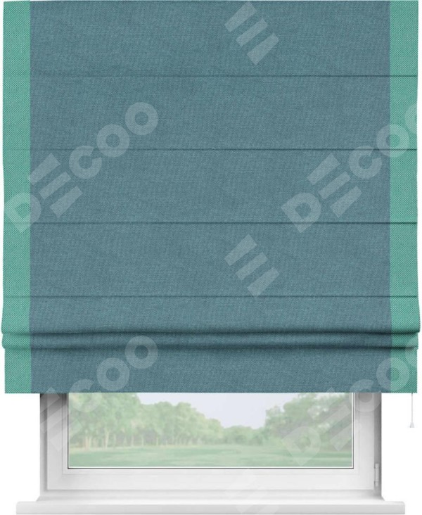Римская штора «Кортин» для проема, лён димаут светло-синий с кантом Стрим Дуо