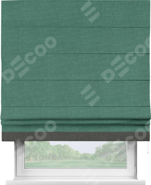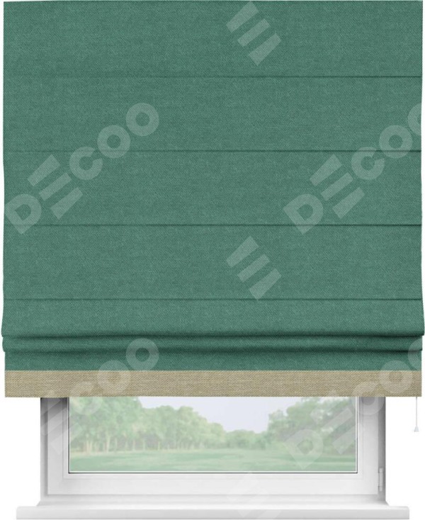 Римская штора «Кортин» для проема, лён димаут светло-бирюзовый с кантом Джестер