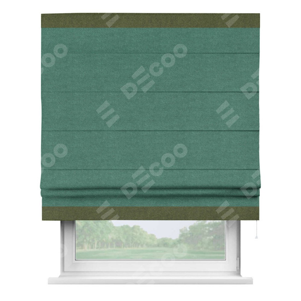 Римская штора «Кортин» для проема, лён димаут светло-бирюзовый с кантом Горизонт